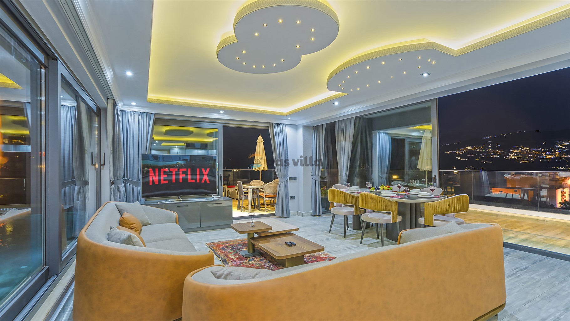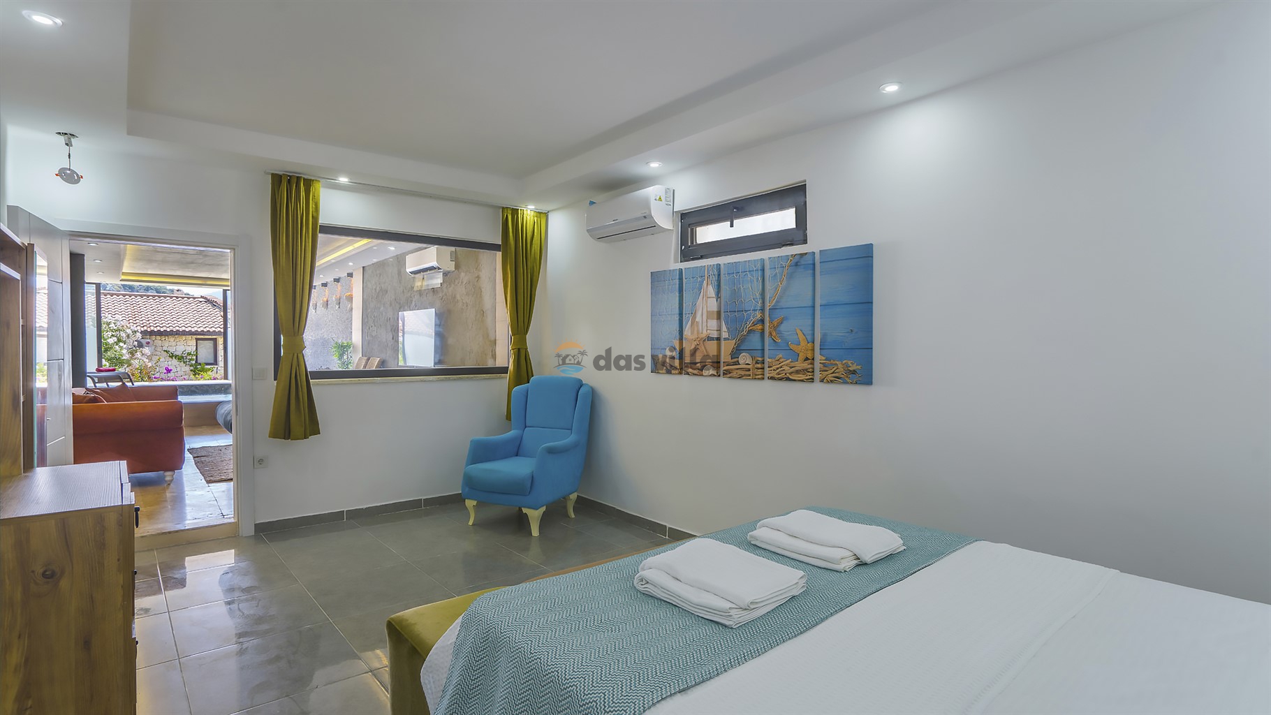 Villa Uğurlu is a private rental villa with a capacity of 8 people and a 4-bedroom with a magnificent sea view in the Kışla area of Kalkan. Our villa, which is within walking distance to the beach, will be an ideal choice for large families. You can relieve the tiredness of the whole year thanks to the jacuzzi and indoor pool in our villa. You will have pleasant days with its meticulous luxury decor and modern design, and you, our valued guests, will want your holiday to never end. Thanks to our villa's modern kitchen, complete equipment and comfortable items, you will feel like you are at home and have the opportunity to have a comfortable holiday. Our villa offers a free holiday area with a magnificent sea view. Our villa, where you can have a pleasant time and collect many memories with your family, awaits you, our valued guests.