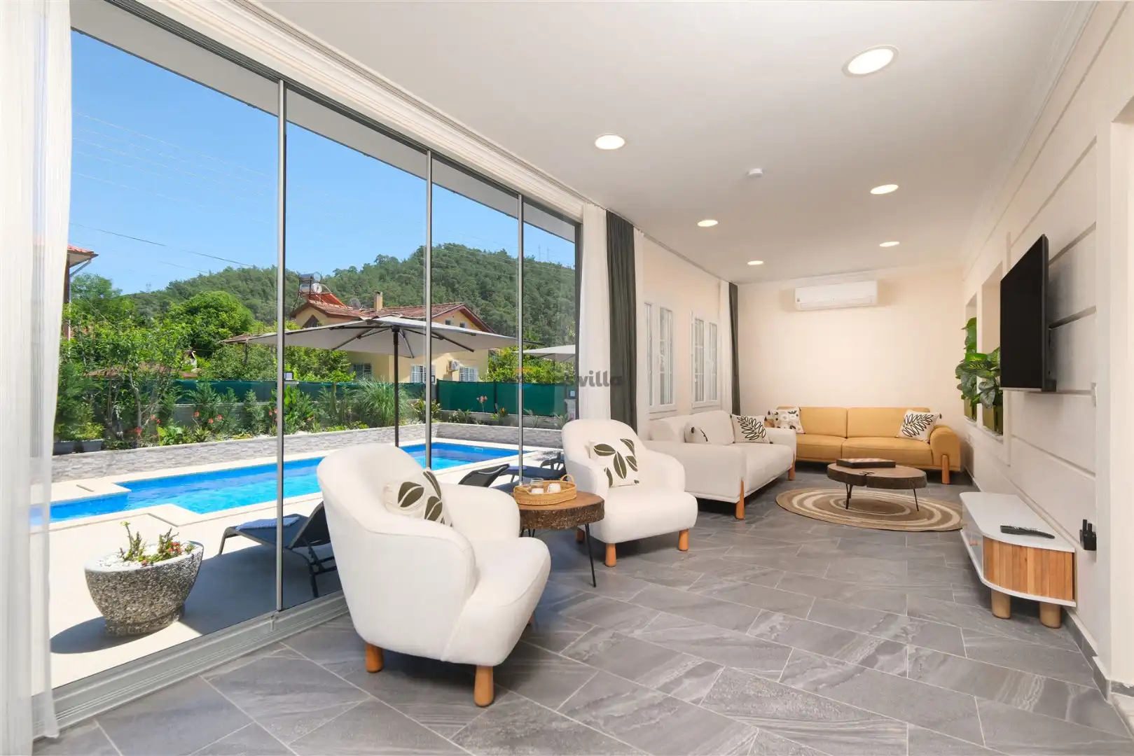 - Oturma GrubuKlimaSehpaTVUydu AlıcıKablosuz ModemHavuz Terasına Çıkış