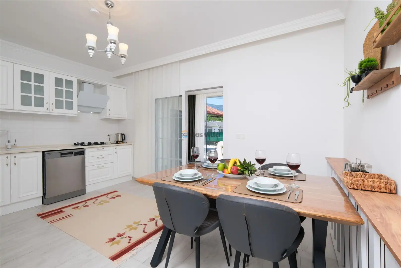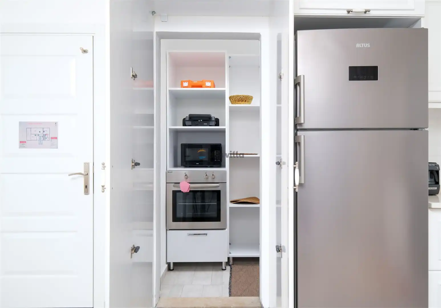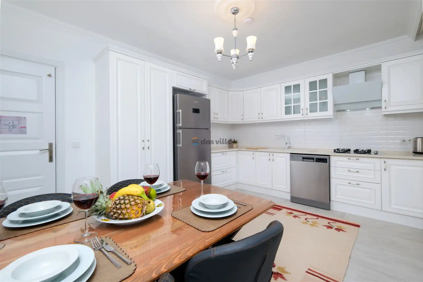 - Amerikan MutfakBulaşık MakinesiBuzdolabıFırınMikrodalga FırınAnkastre 4'lü OcakSu IsıtıcısıTencere ve Tava TakımıYemek TakımıKaşık Çatal Bıçak TakımıBardak TakımıYemek MasasıTost MakinesiKahve MakinesiÇamaşır Makinesi