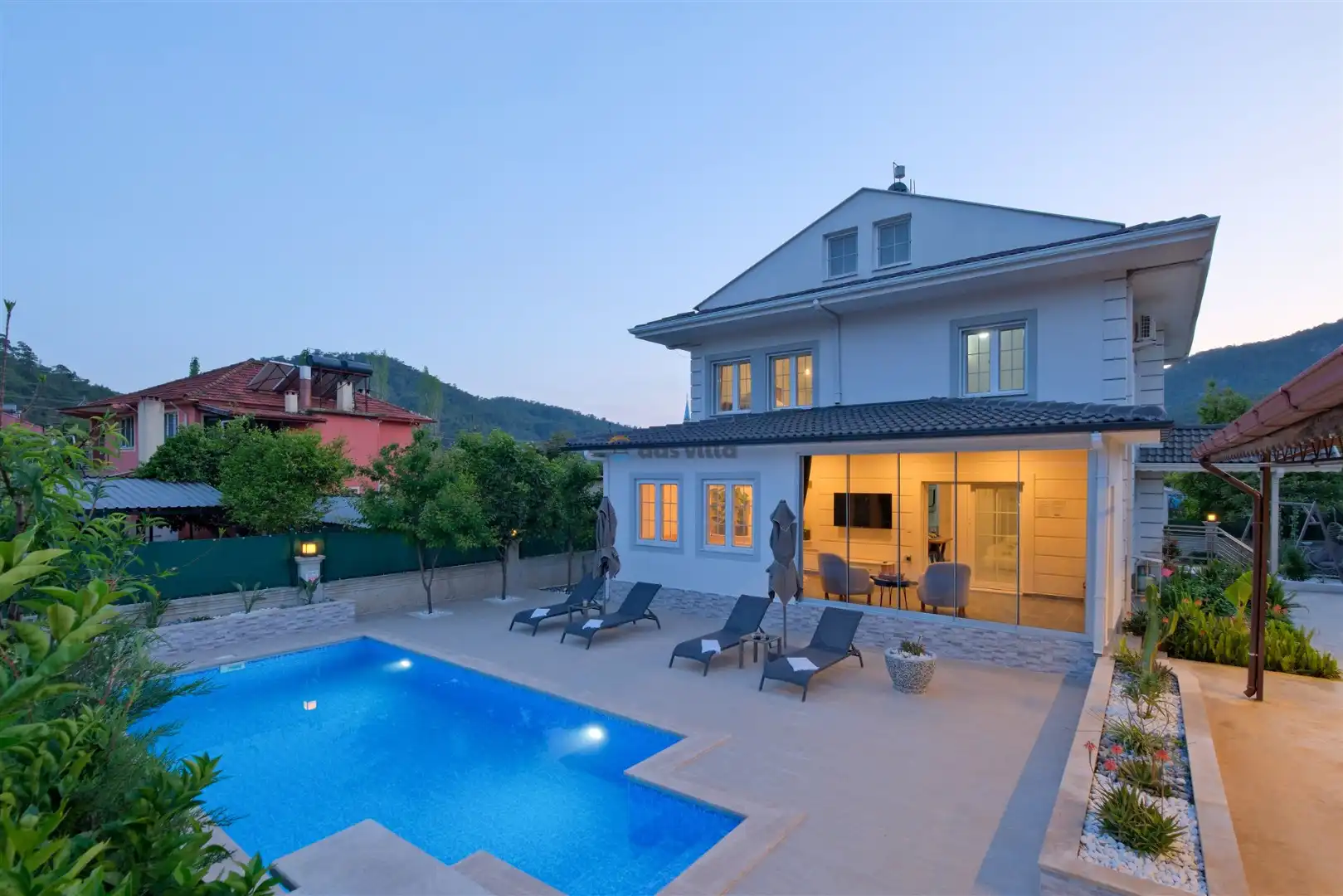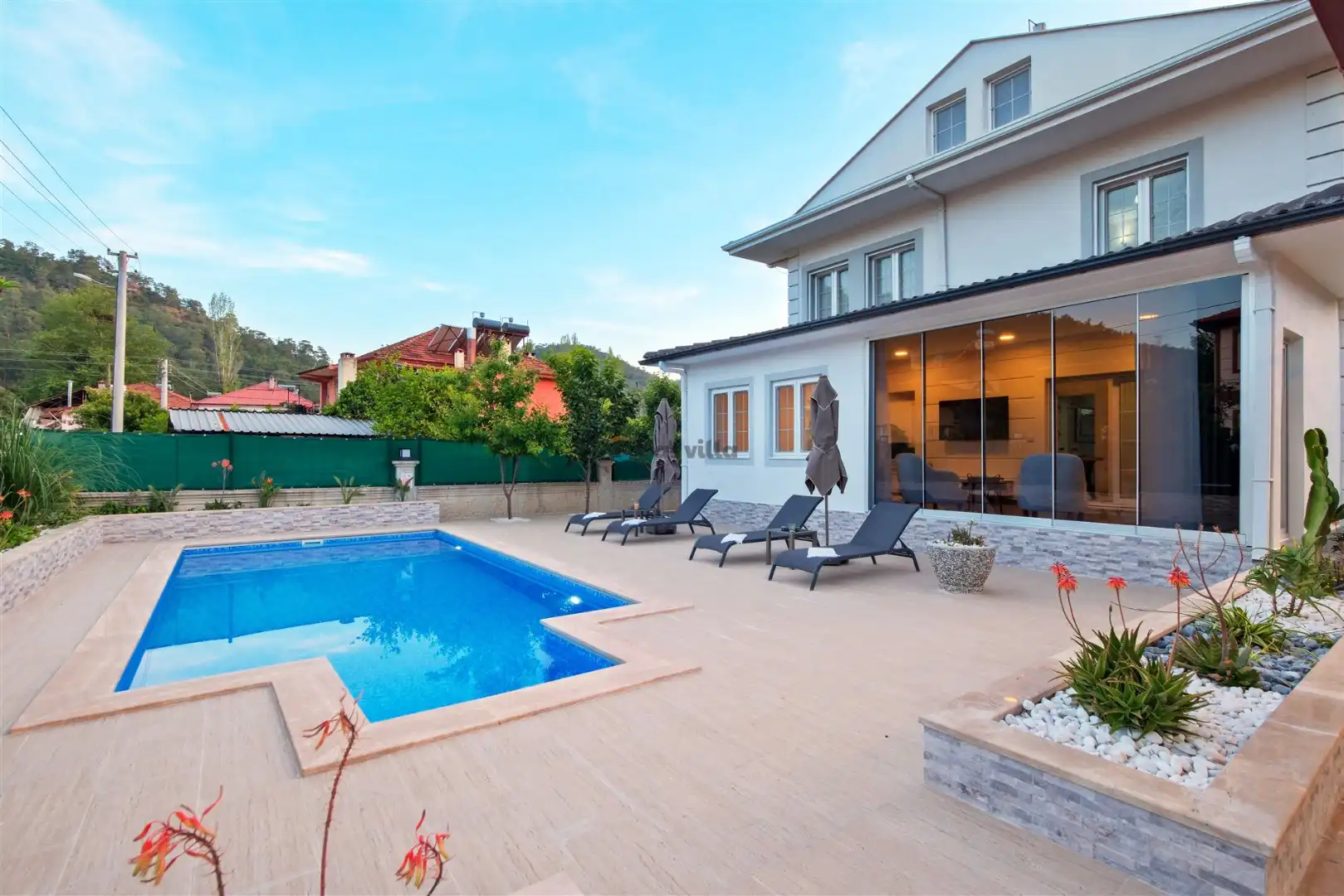 - Özel BahçeliFull EşyalıDoğa ManzarasıHavuz ve Bahçe Bakımıİnternet BağlantısıVerandaOtopark / Park YeriÜtü / Ütü Masası