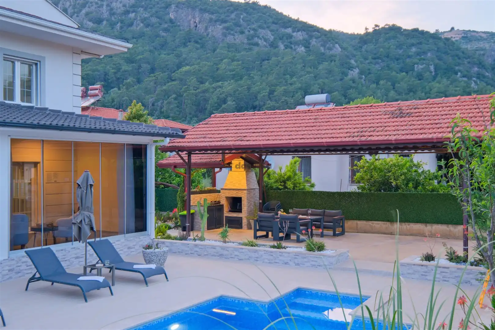 - Özel Yüzme HavuzuŞezlongŞemsiyeSehpa (Dış Mekan)Yemek Masası (Dış Mekan)Barbekü / MangalBahçe MobilyasıHamak / Salıncak