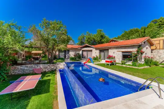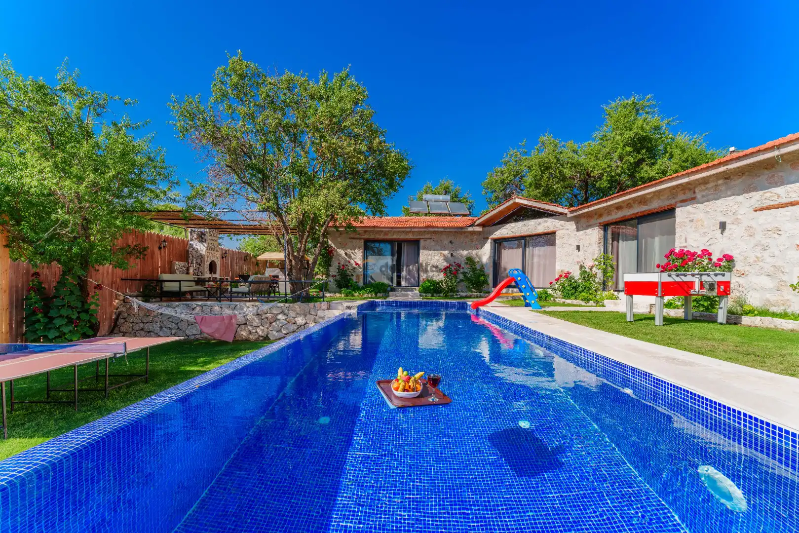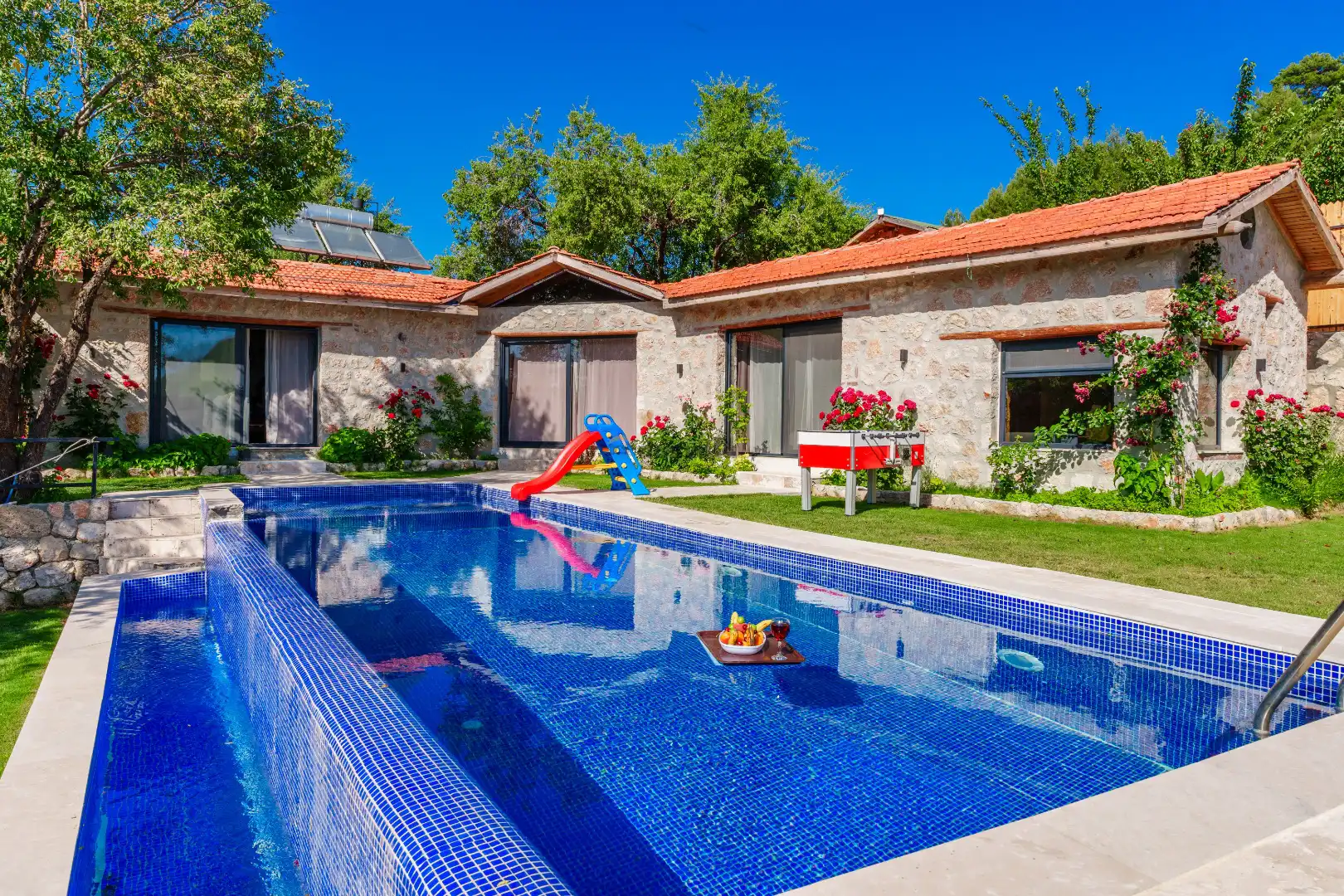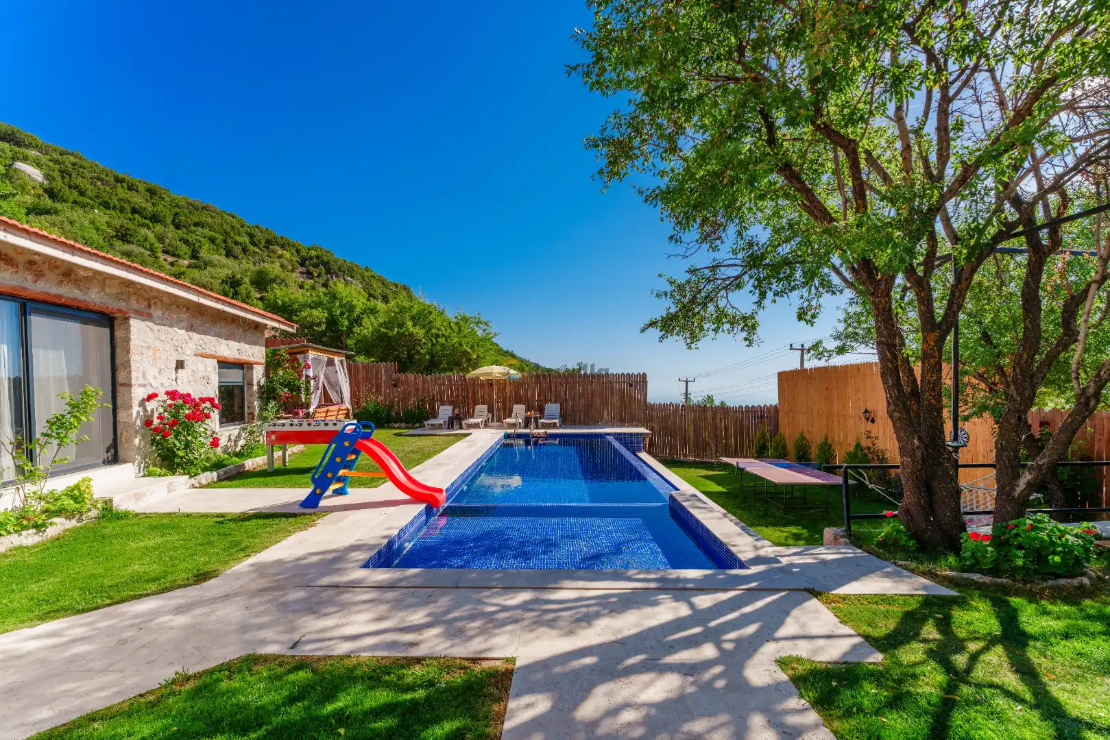 Villa Akbaş 2, Kalkan Sarıbelen bölgesinde 2 yatak odalı 4 kişi kapasiteli size özel modern taş yapılı kiralık villamız dır. Doğa içerisinde bulunan villamız muhafazakar bir yapıya sahiptir. Villamızın modern mutfağı, eksiksiz araç-gereçleri ve konforlu eşyaları sayesinde kendinizi evinizde gibi hissedebilecek ve rahat bir tatil geçirme imkanı bulabileceksiniz. Villamızın özel yüzme havuzunun korunaklı bir şekilde tasarlanması özellikle muhafazakâr ailelerimizin memnuniyeti için yarar sağlamaktadır. Balayı çiftleri veya çekirdek aileler için oldukça uygun olan modern ve özenle dizayn edilmiş villamıza siz değerli misafirlerimizi beklemekteyiz.
