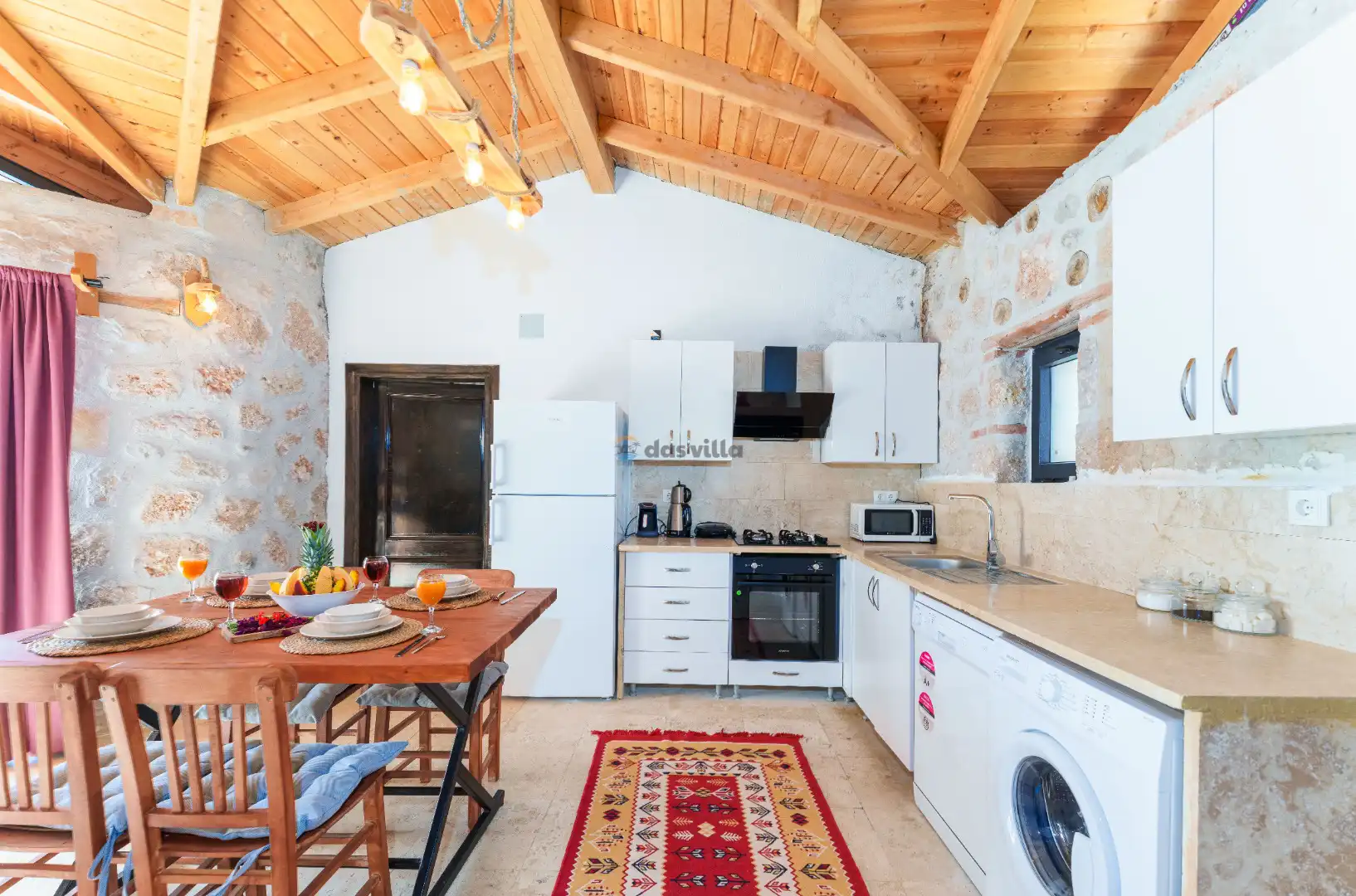 - Amerikan MutfakBulaşık MakinesiBuzdolabıFırınMikrodalga FırınAnkastre 4'lü OcakSu IsıtıcısıTencere ve Tava TakımıYemek TakımıKaşık Çatal Bıçak TakımıBardak TakımıYemek MasasıTost Makinesi