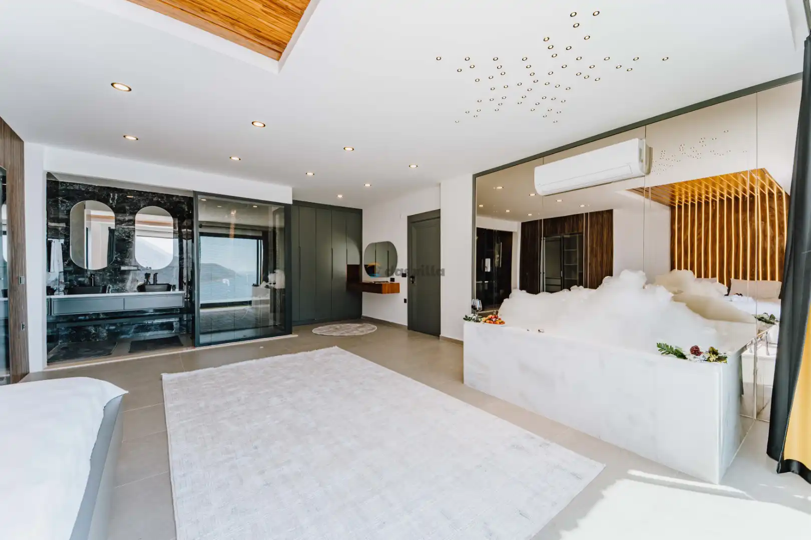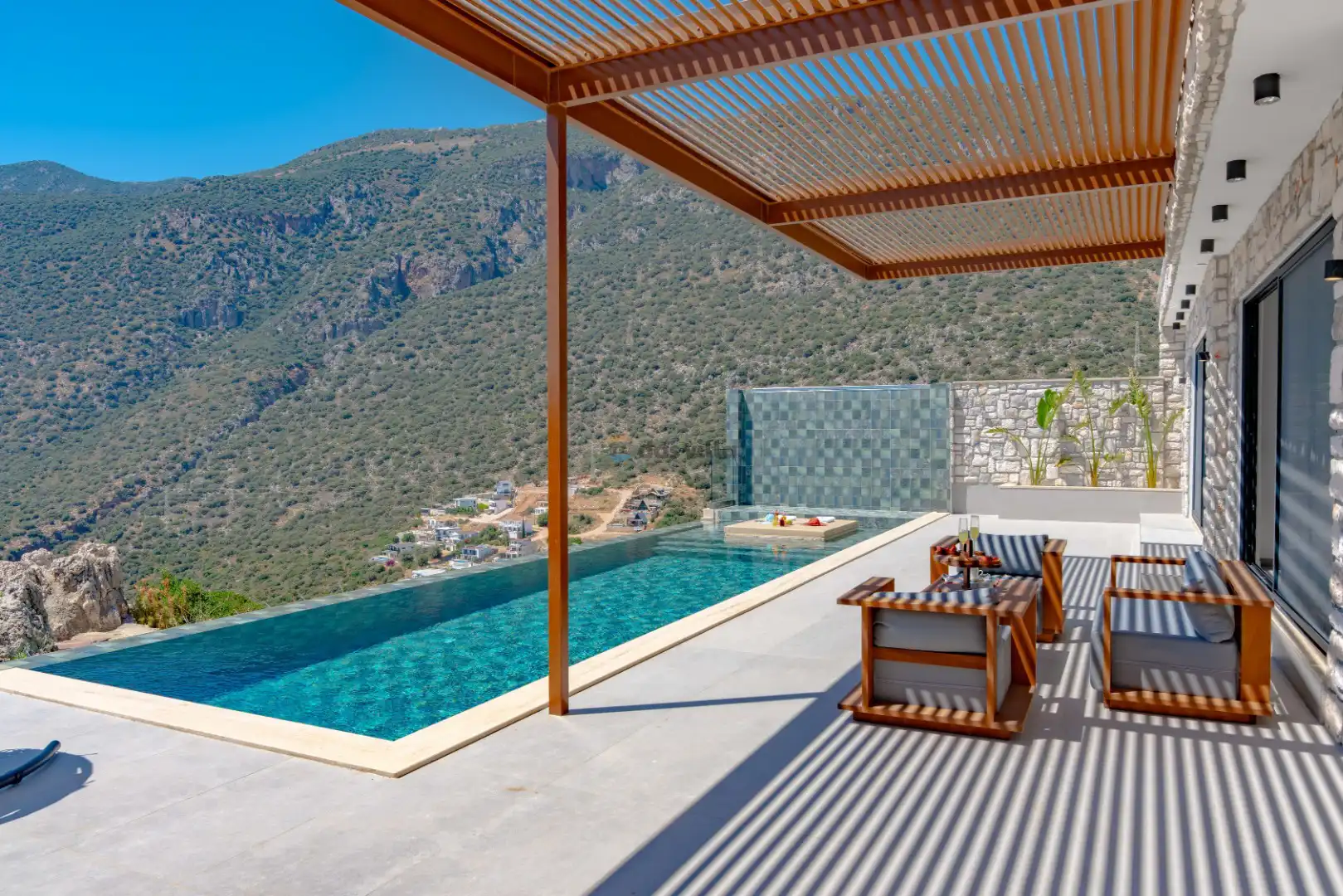 Villa Akbulut 2 Kaş Gökseki bölgesinde konumlandırılmış 4 kişi kapasiteli 2 yatak odalı villamızdır. Doğa ile iç içe ve muhtelem bir deniz manzarasına sahip olan kiralık lüks tatil villamız Villa Akbulut 2 aileler ve arkadaş grupları için oldukça uygun bir seçenektir. Villamızda günün yorgunluğunu atableceğiniz hamam, sauna ve jakuzi bulunmaktadır. Ayrıca keyifli vakitler geçirebileceğiniz bilardo ve sinema odası bulunan kiralık lüks villamız sessiz ve sakin bir tatil fırsatı sunmak için misafirlerine kapılarını aralıyor.