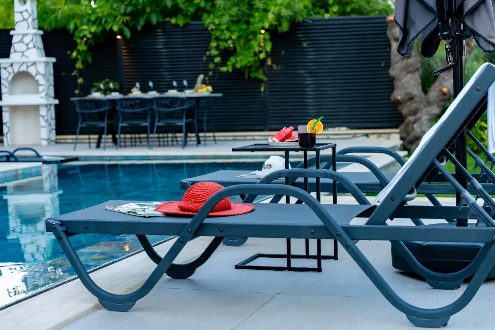 - Özel Yüzme HavuzuŞezlongŞemsiyeSehpa (Dış Mekan)Yemek Masası (Dış Mekan)Barbekü / MangalBahçe MobilyasıHamak / Salıncak