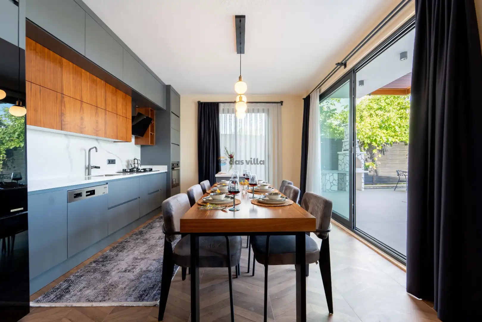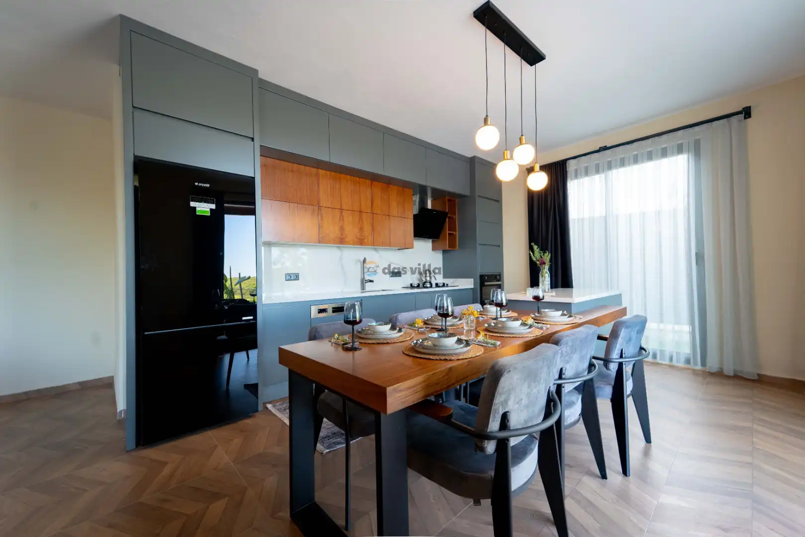 - Amerikan MutfakBulaşık MakinesiBuzdolabıFırınMikrodalga FırınAnkastre 4'lü OcakSu IsıtıcısıTencere ve Tava TakımıYemek TakımıKaşık Çatal Bıçak TakımıBardak TakımıYemek MasasıÇamaşır Makinesi