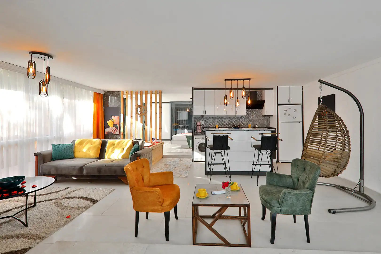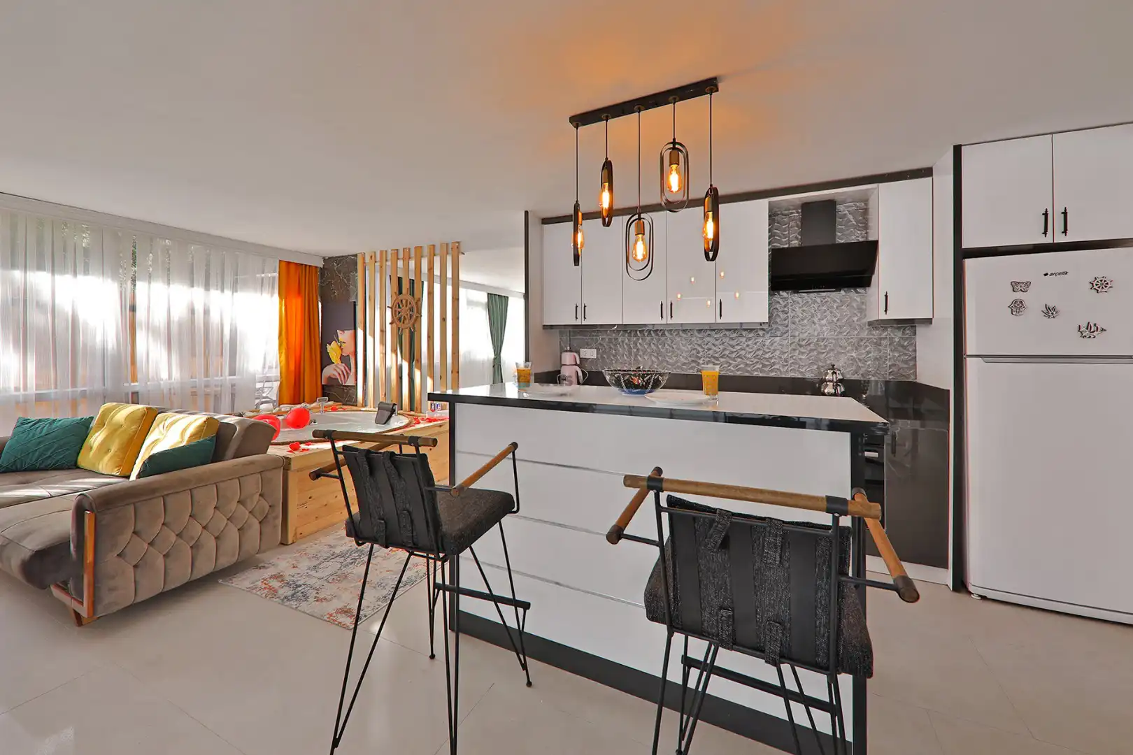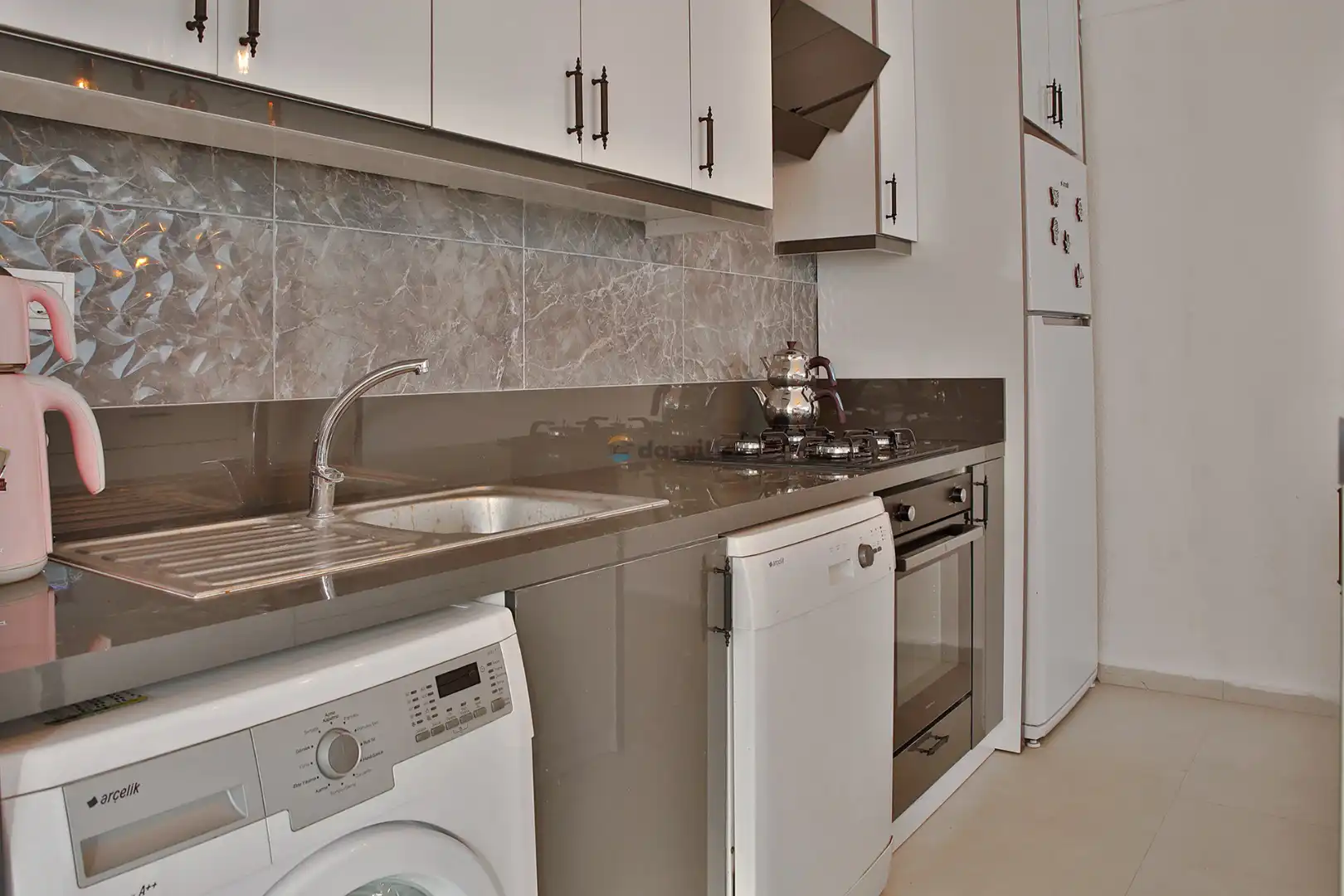 - Amerikan MutfakBulaşık MakinesiBuzdolabıFırınAnkastre 4'lü OcakSu IsıtıcısıTencere ve Tava TakımıYemek TakımıKaşık Çatal Bıçak TakımıBardak TakımıYemek MasasıÇamaşır Makinesi