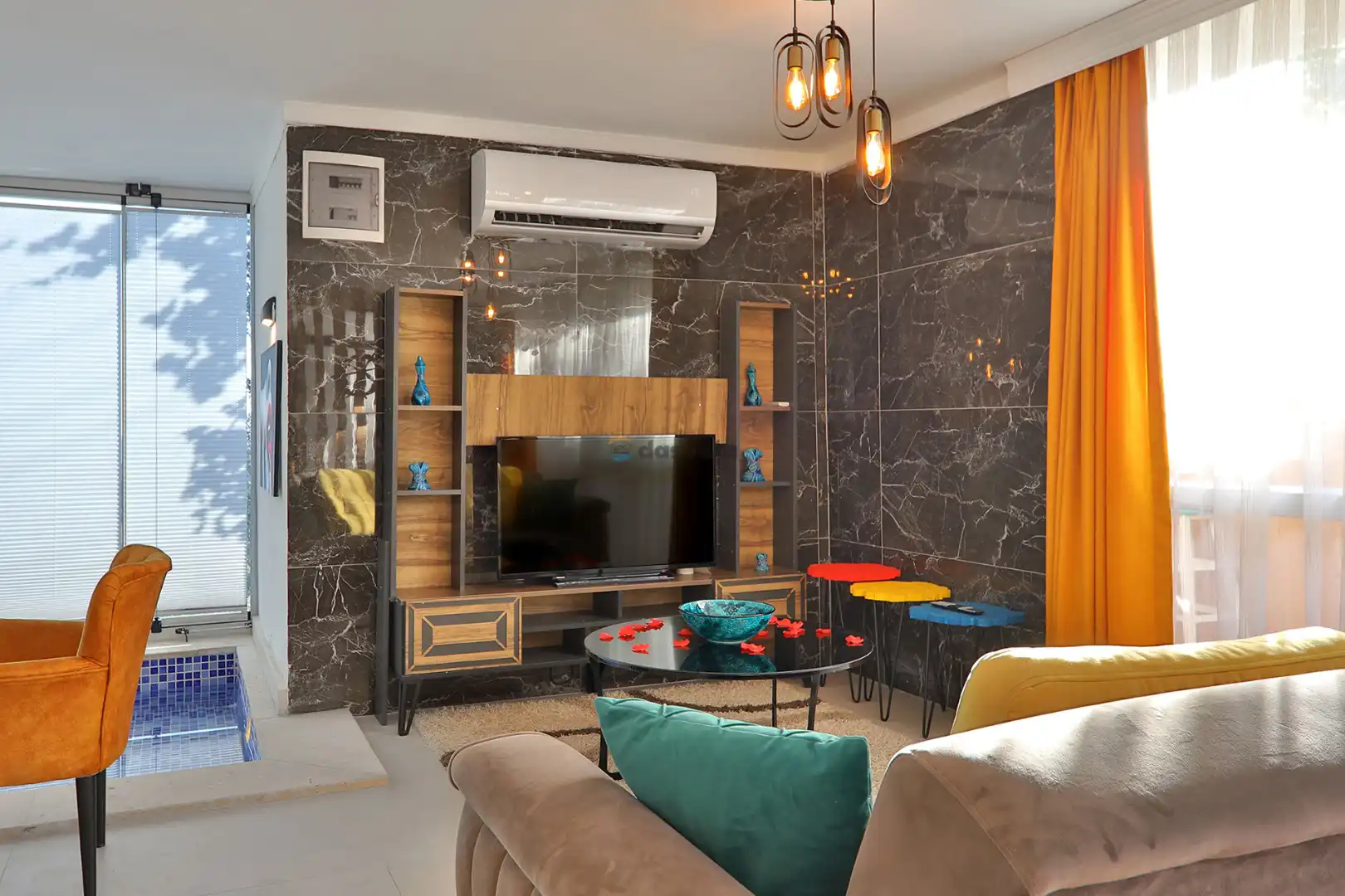 - Oturma GrubuKlimaSehpaTVUydu AlıcıKablosuz ModemHavuz Terasına Çıkış