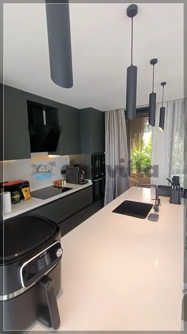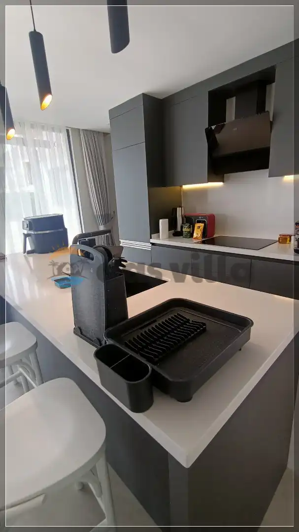 - Amerikan MutfakBulaşık MakinesiBuzdolabıFırınMikrodalga FırınAnkastre 4'lü OcakSu IsıtıcısıEkmek Kızartma MakinesiTencere ve Tava TakımıYemek TakımıKaşık Çatal Bıçak TakımıBardak TakımıYemek MasasıKahve MakinesiÇamaşır Makinesi