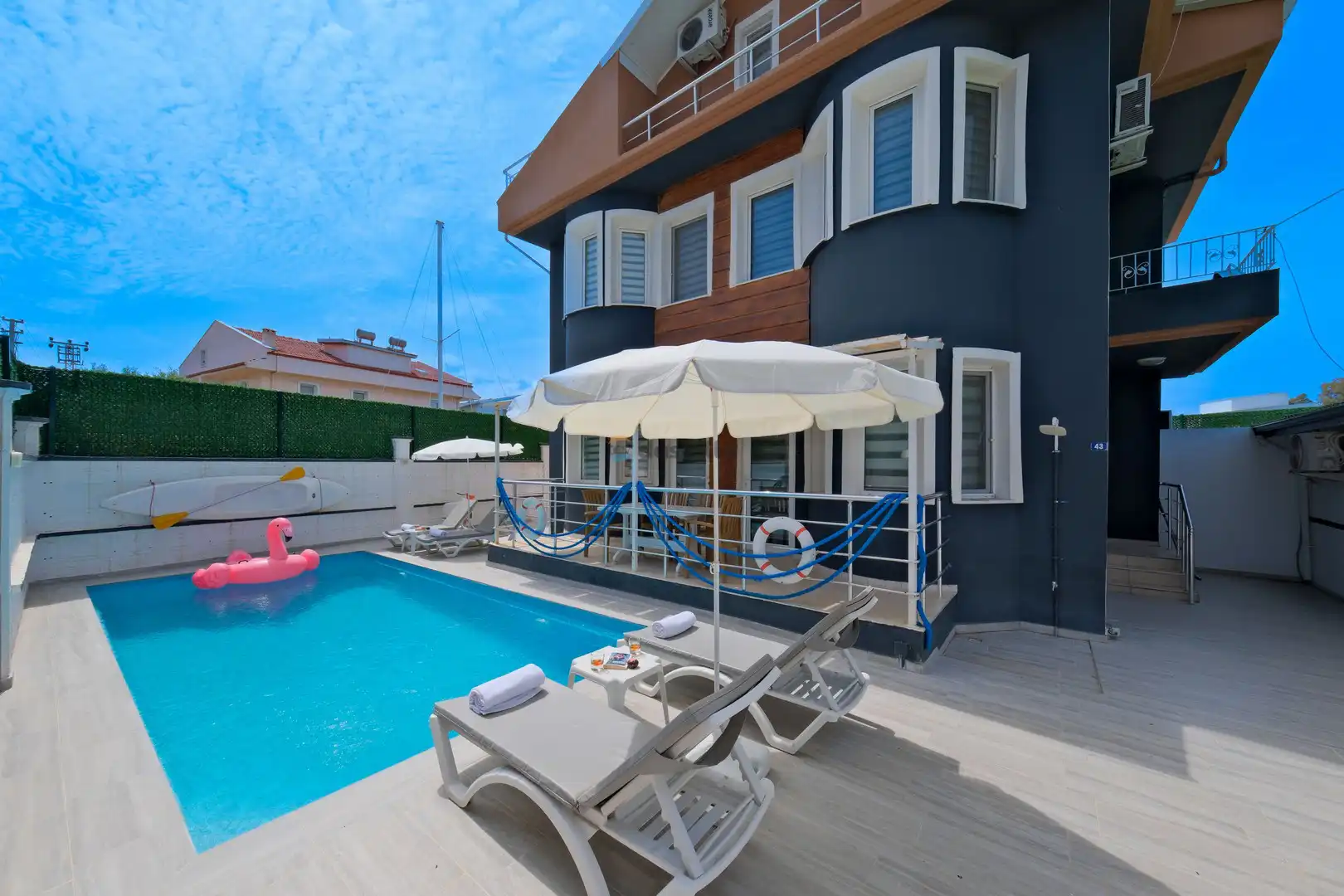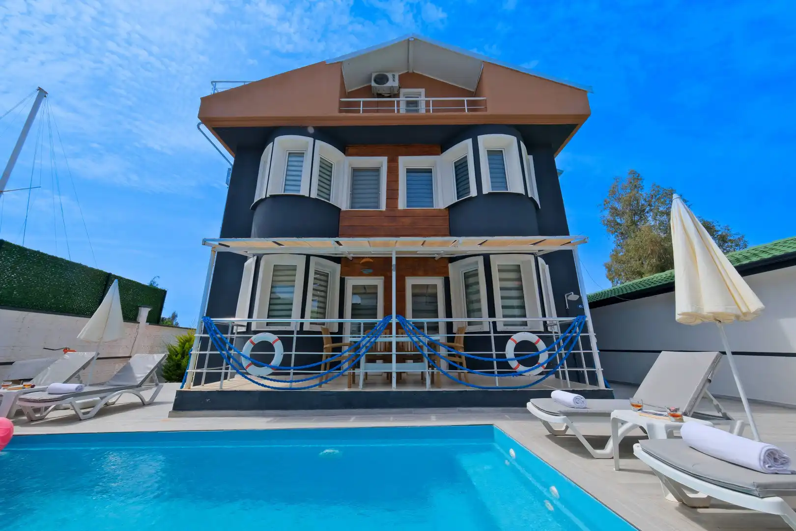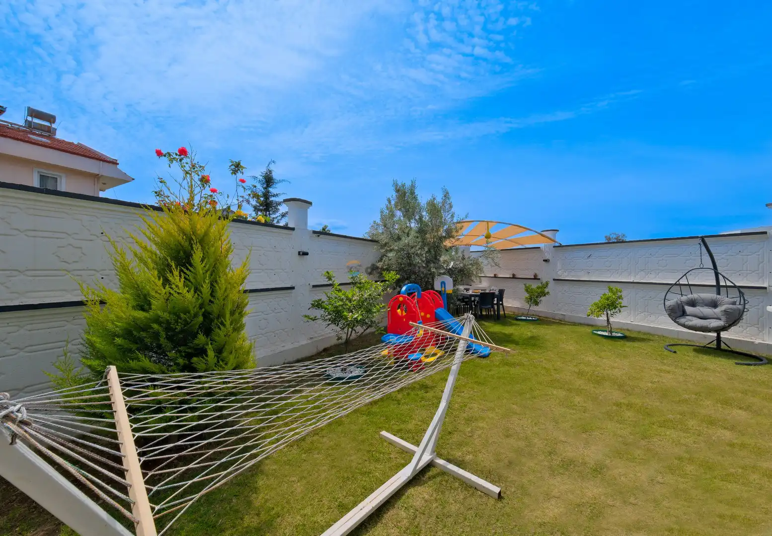 - Özel Yüzme HavuzuŞezlongŞemsiyeSehpa (Dış Mekan)Yemek Masası (Dış Mekan)Barbekü / MangalBahçe MobilyasıHamak / Salıncak