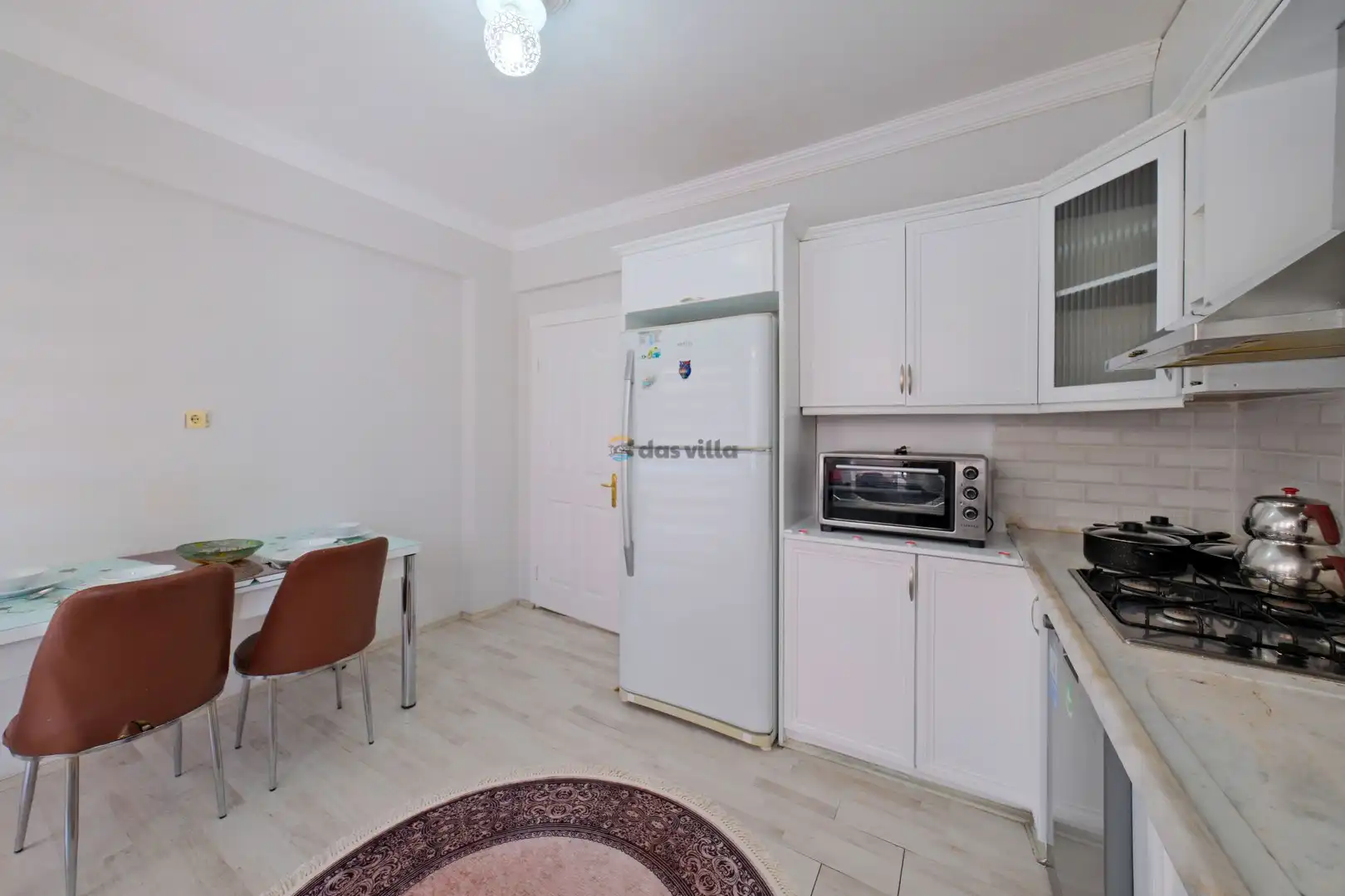 - Amerikan MutfakBulaşık MakinesiBuzdolabıFırınMikrodalga FırınAnkastre 4'lü OcakSu IsıtıcısıEkmek Kızartma MakinesiTencere ve Tava TakımıYemek TakımıKaşık Çatal Bıçak TakımıYemek MasasıTost MakinesiÇamaşır Makinesi
