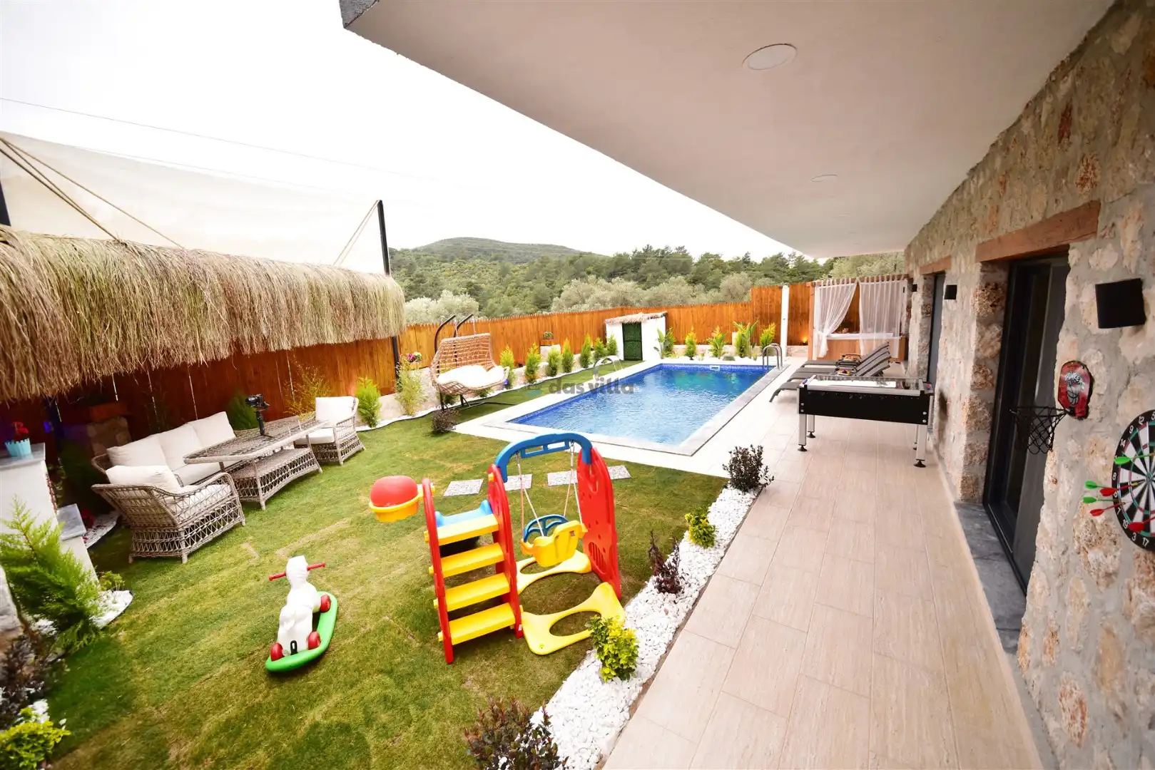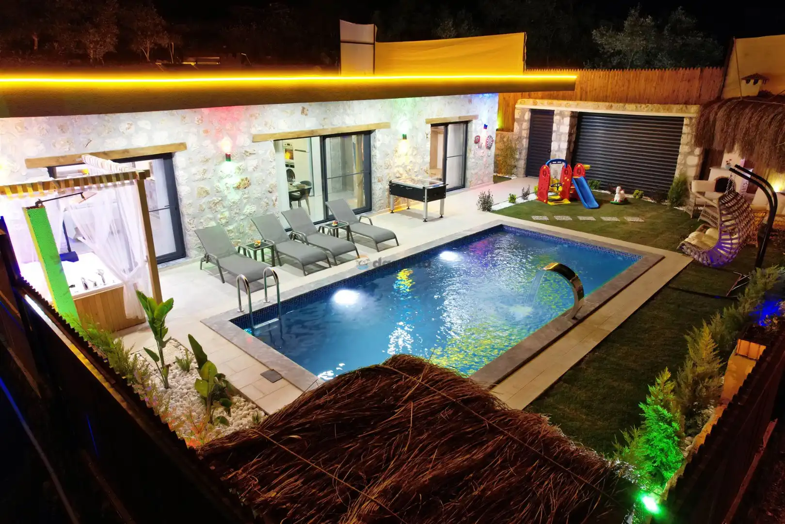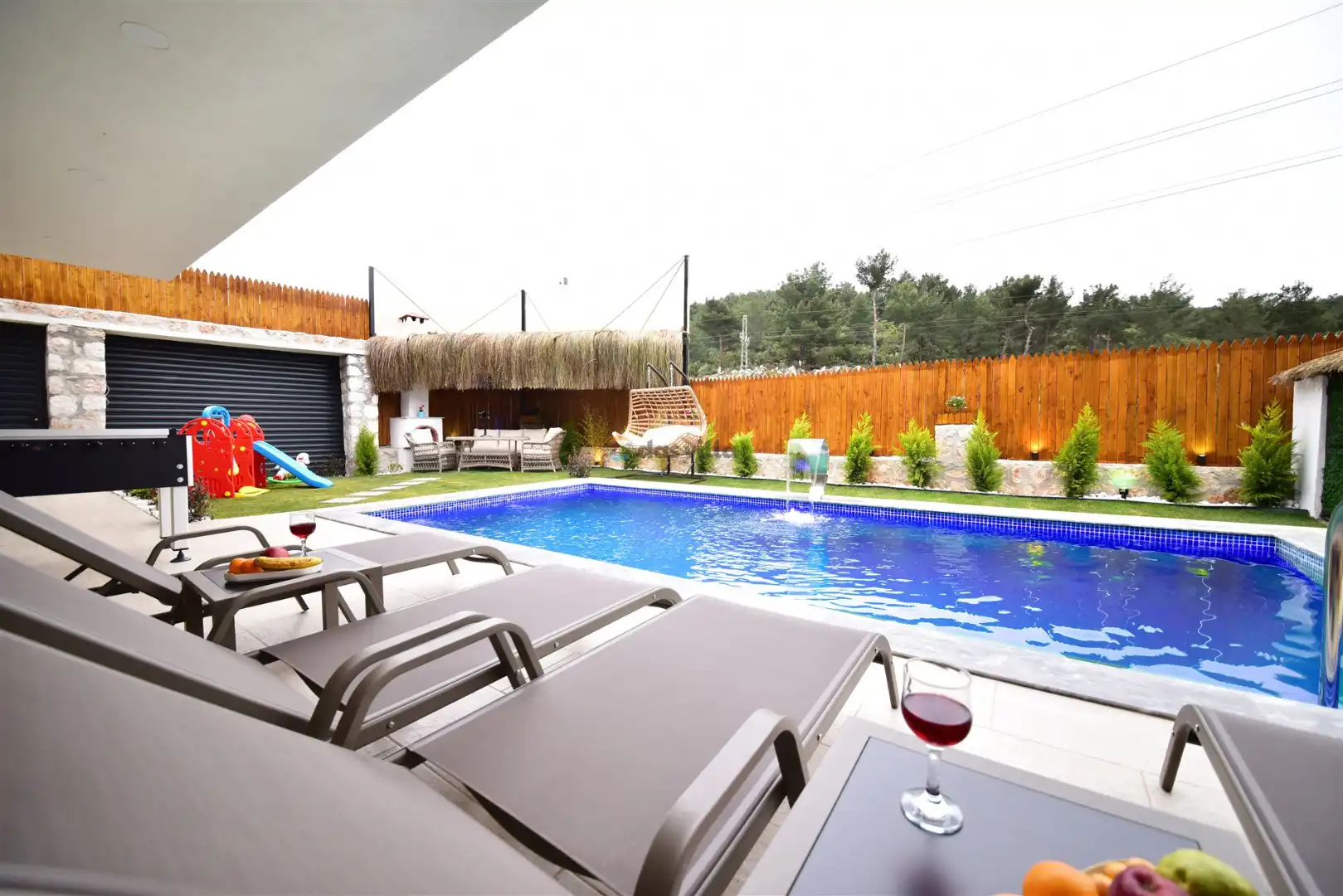 - Özel Yüzme HavuzuŞezlongŞemsiyeSehpa (Dış Mekan)Yemek Masası (Dış Mekan)Barbekü / Mangal