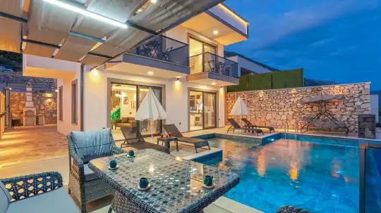 Villa Aydemir Gökseki, Kaş'ın muhteşem doğasıyla çevrili olan Gökseki mevkiinde konumlanmış , modern ve lüks bir tatil deneyimi sunmak için tasarlanmış lüks bir villamızdır. İki yatak odasıyla dört kişiye kadar konaklama kapasitesine sahip olan villa, deniz manzaralıdır. Aile grupları ve balayı çiftleri için ideal bir seçenektir.