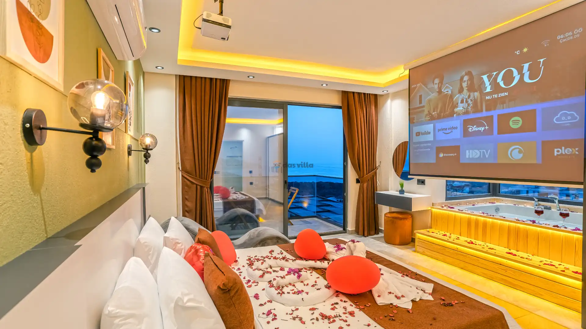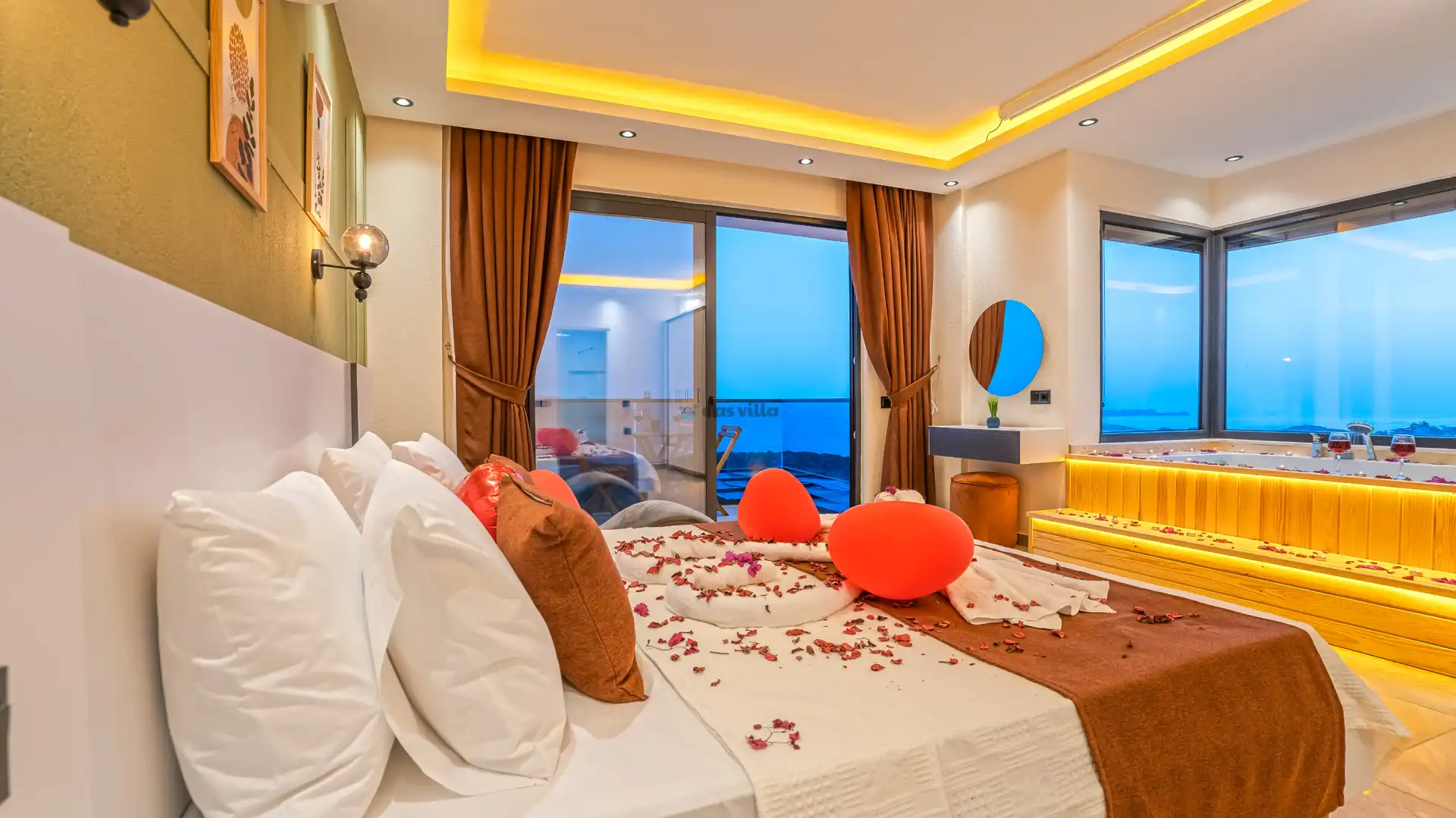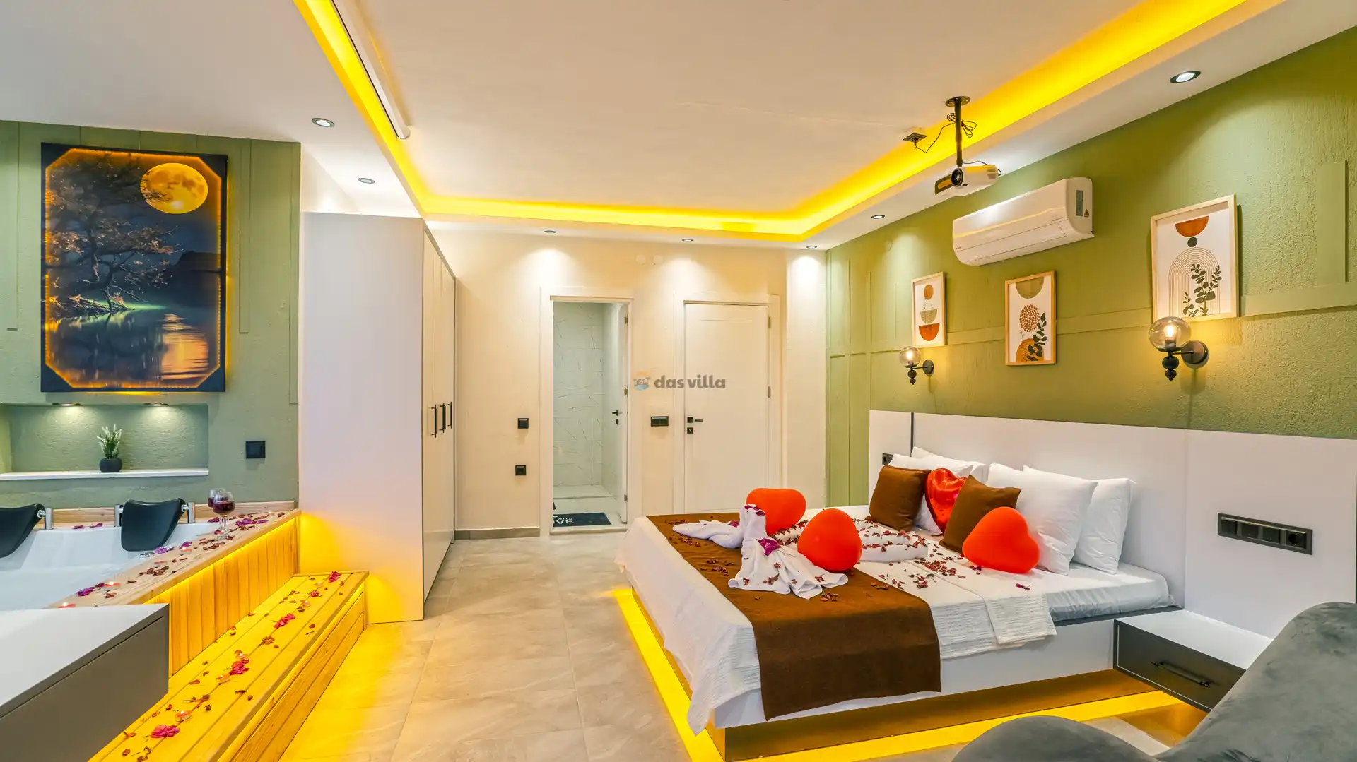 - Özel BahçeliFull EşyalıDoğa ManzarasıHavuz ve Bahçe Bakımıİnternet BağlantısıJakuziDeniz ManzarasıOtopark / Park YeriÜtü / Ütü MasasıSinema Odası
