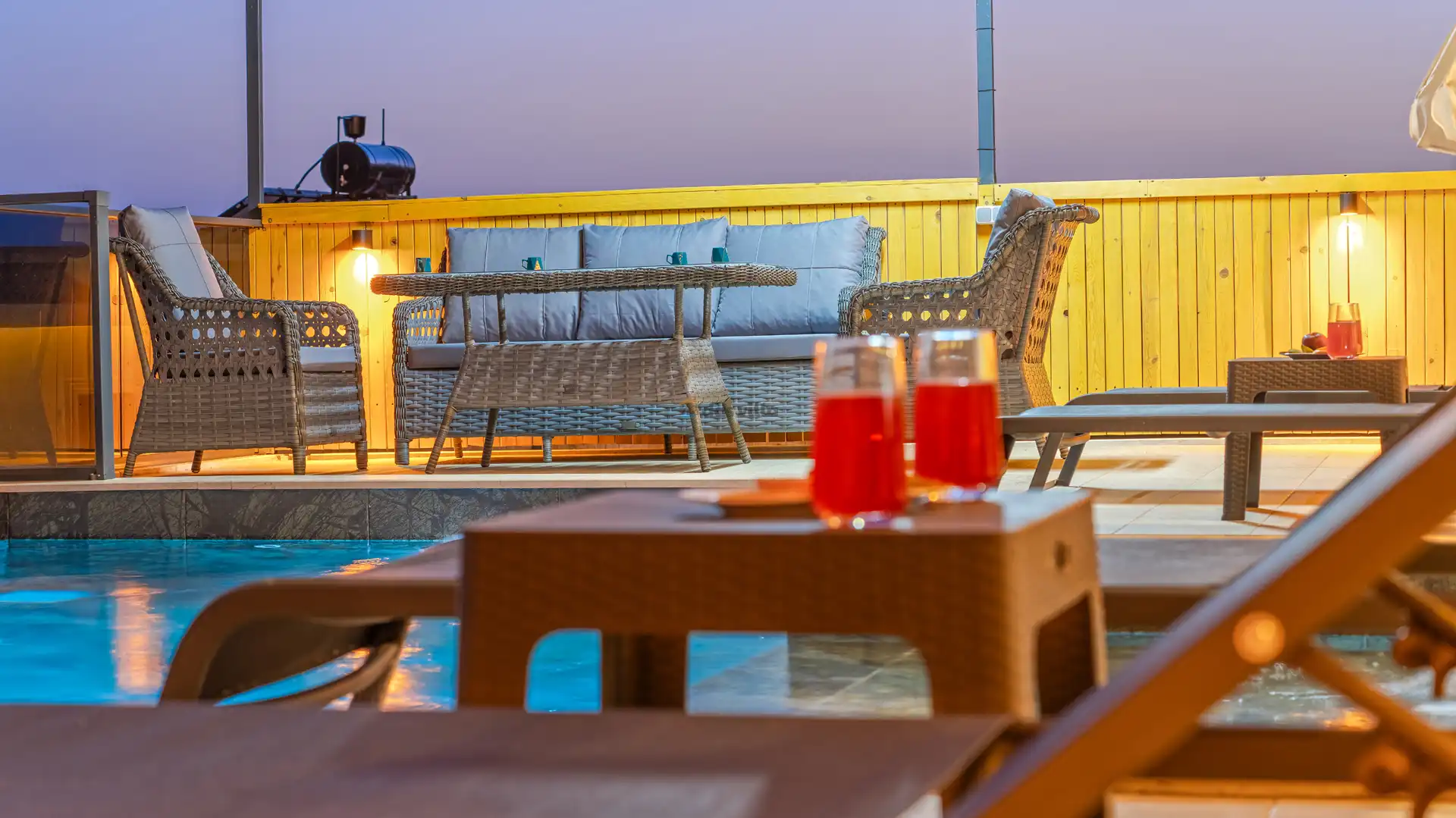 - Oturma GrubuKlimaSehpaTVUydu AlıcıKablosuz ModemHavuz Terasına Çıkış