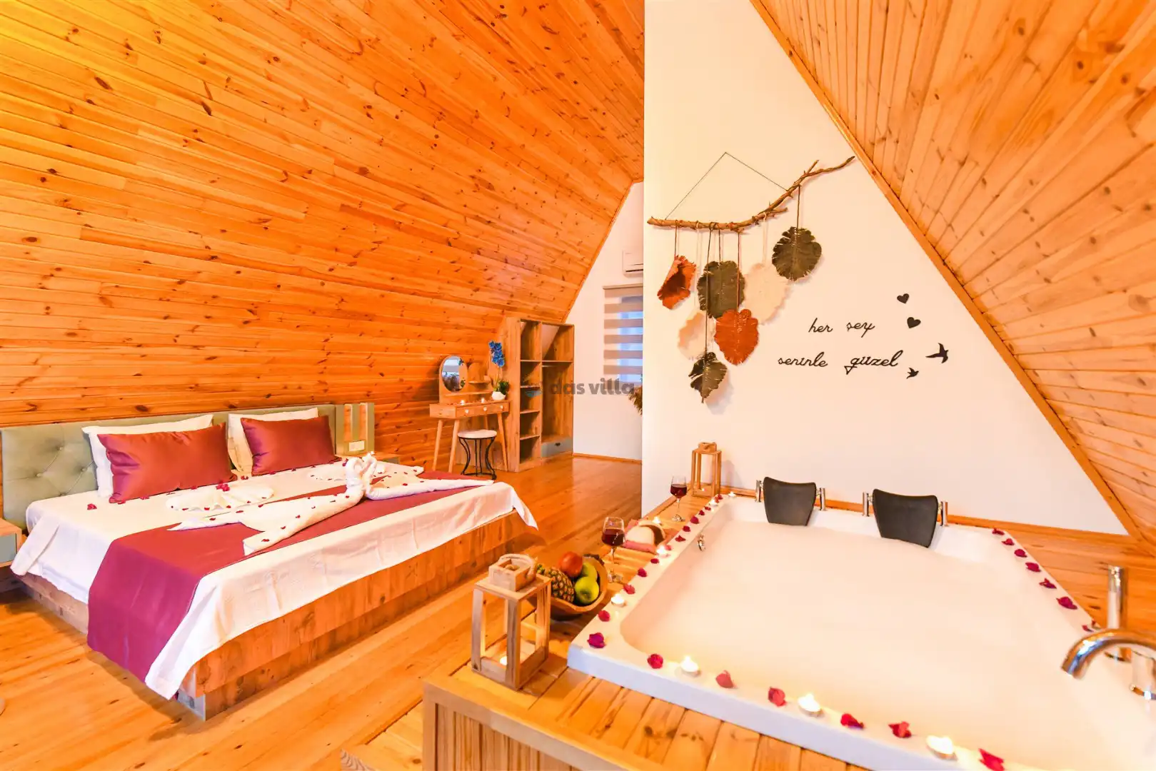 Villa Bungalov Nil Kalkan İslamlar bölgesinde konumlandırılmış 2 kişi kapasiteli tek yatak odalı villamızdır. Doğa ile iç içe olan kiralık tatil villamız Villa Bungalov Nil balayı çiftlerimiz için oldukça uygun bir seçenektir. Yatak odasında günün yoegunluğunu atabileceğiniz bir de jakuzisi bulunan kiralık villamız keyifli bir tatil fırsatı sunmak için misafirlerine kapılarını aralıyor.