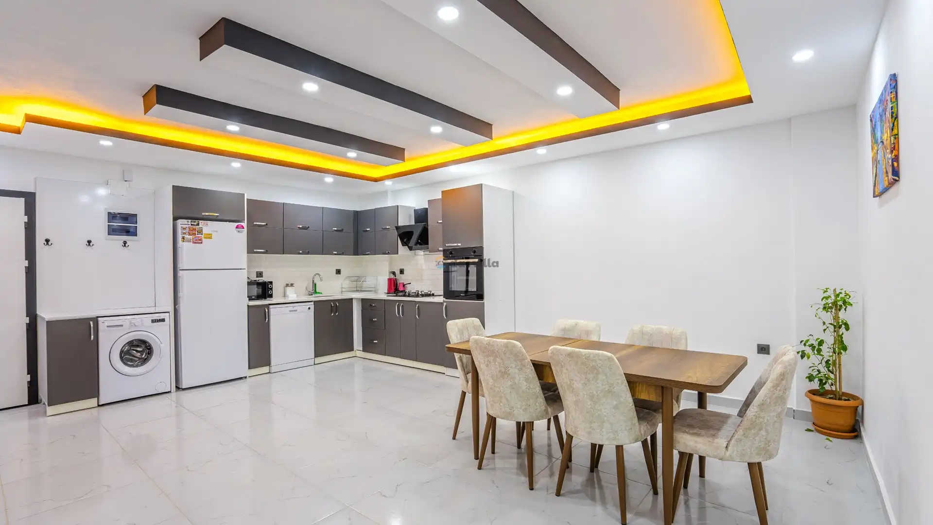 - Amerikan MutfakBulaşık MakinesiBuzdolabıFırınMikrodalga FırınAnkastre 4'lü OcakSu IsıtıcısıTencere ve Tava TakımıYemek TakımıKaşık Çatal Bıçak TakımıBardak TakımıYemek MasasıTost Makinesi