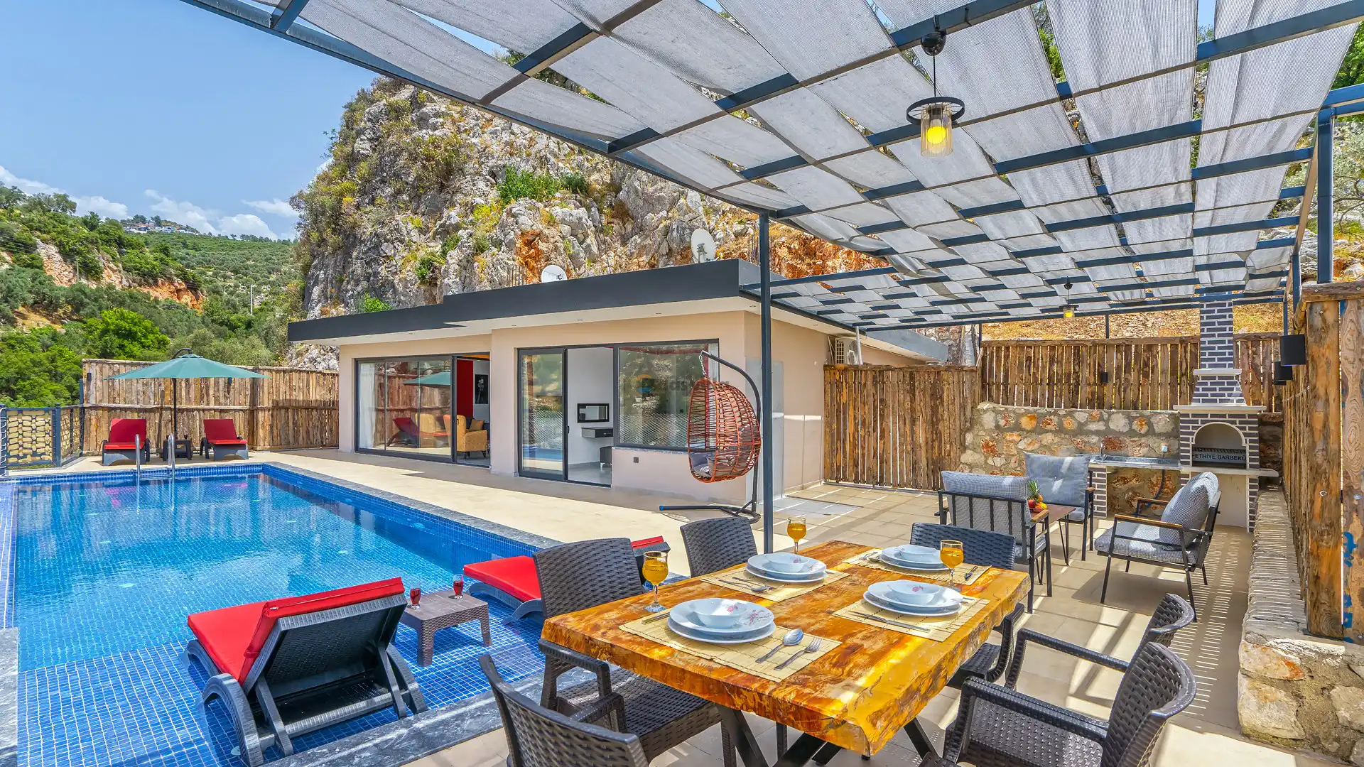 - Özel Yüzme HavuzuŞezlongŞemsiyeSehpa (Dış Mekan)Yemek Masası (Dış Mekan)Barbekü / Mangal