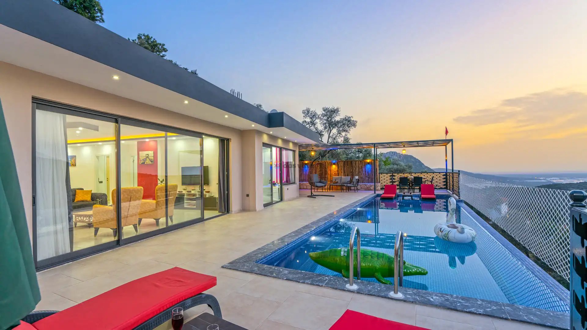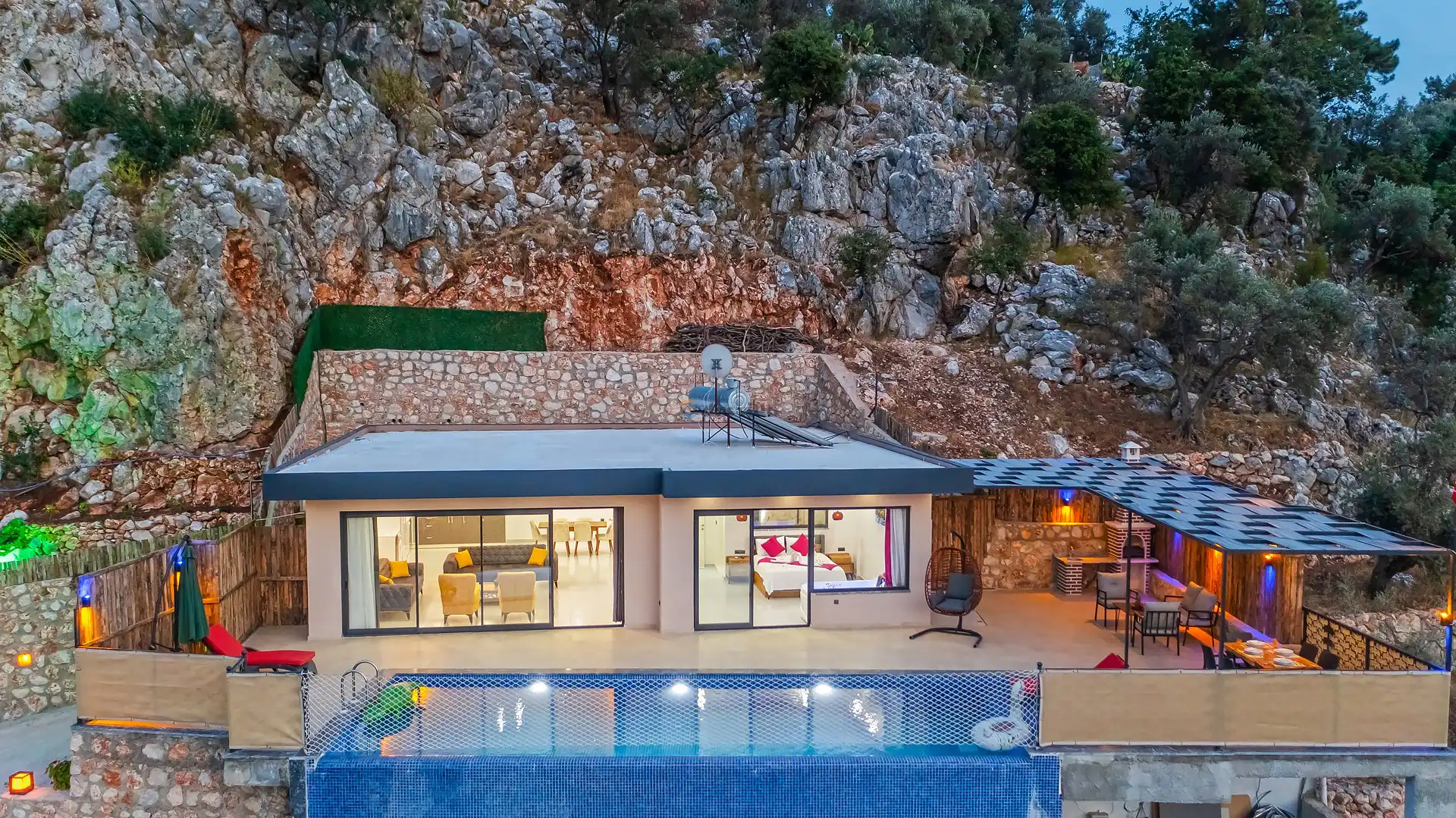 Villa Cenk Üzümlü; Kalkan Üzümlü bölgesinde konumlandırılmış 4 kişi kapasiteli 2 yatak odalı villamızdır. Doğa ile iç içe konumlandırılmış kiralık tatil villamız Villa Cenk aileler ve balayı çiftlerimiz için oldukça uygun bir seçenektir. Ayrıca yatak odasında günün yorgunluğunu atabliceğiniz bir de jakuzisi mevcuttur.