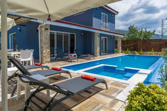 Villa Dream House, Kalkan Sarıbelen mahallesinde 3 yatak odalı 6 kişilik muhafazakar villalar seçenekleri arasında yer alan çocuklu aileler için oldukça ideal bir seçenektir. Villa Dream House, yazlık kiralık villa kalabalık aileler ve arkadaş grupları için özenle tasarlanmış, geniş ve bol yeşil alanlı bir bahçeye sahiptir. Modern mimarisi ile dikkat çeken havuzu jakuzili kiralık villa , tatil boyunca ihtiyacınız olan tüm temel eşyalara sahiptir. Ayrıca çocuklar için de oyun alanı da bulunmaktadır.