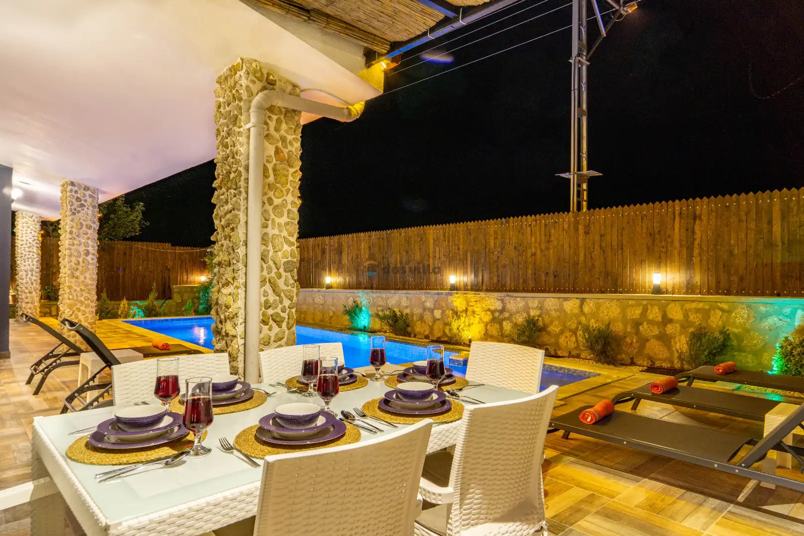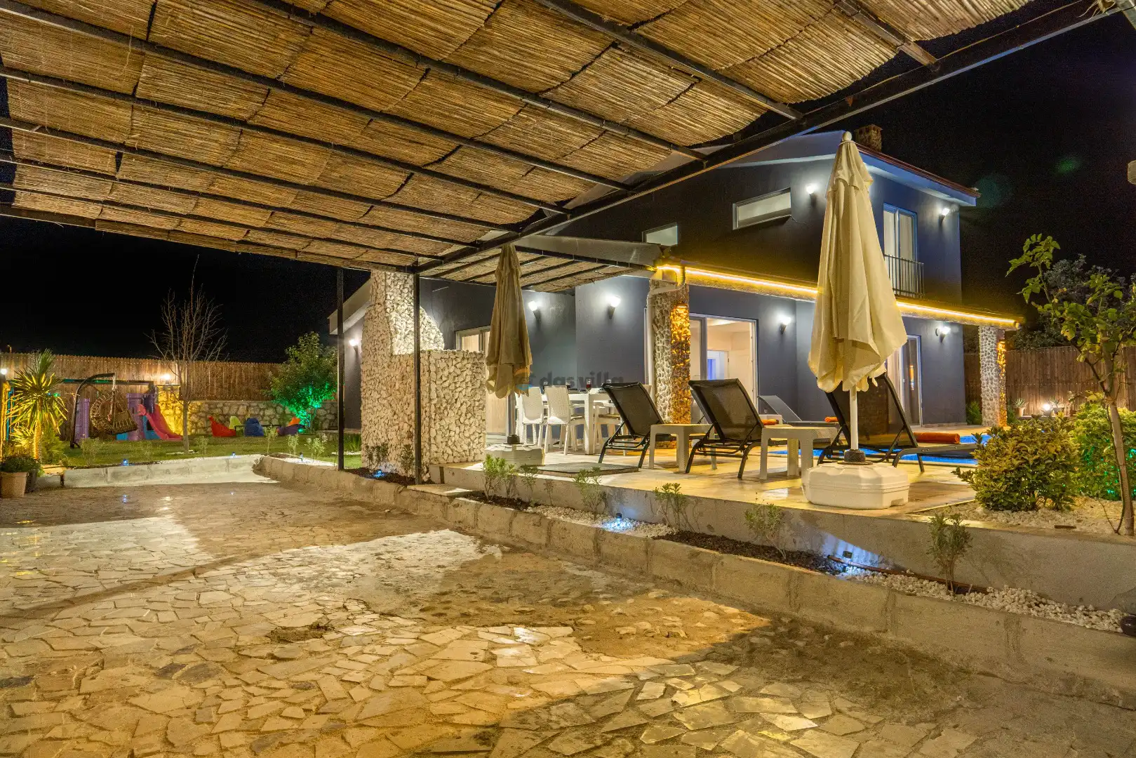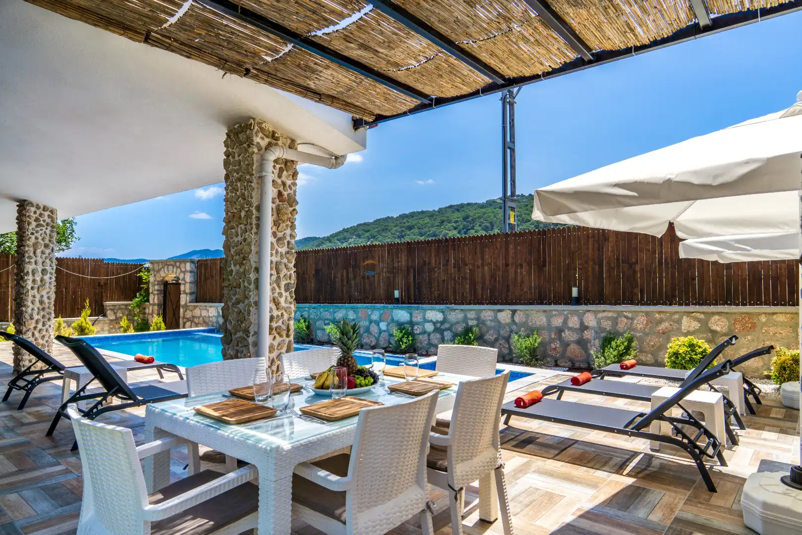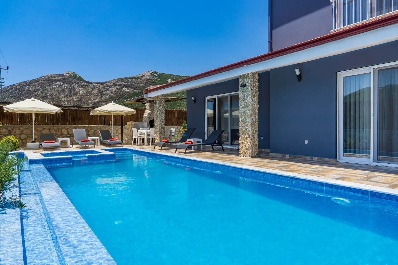- Özel Yüzme HavuzuŞezlongŞemsiyeSehpa (Dış Mekan)Yemek Masası (Dış Mekan)Barbekü / Mangal