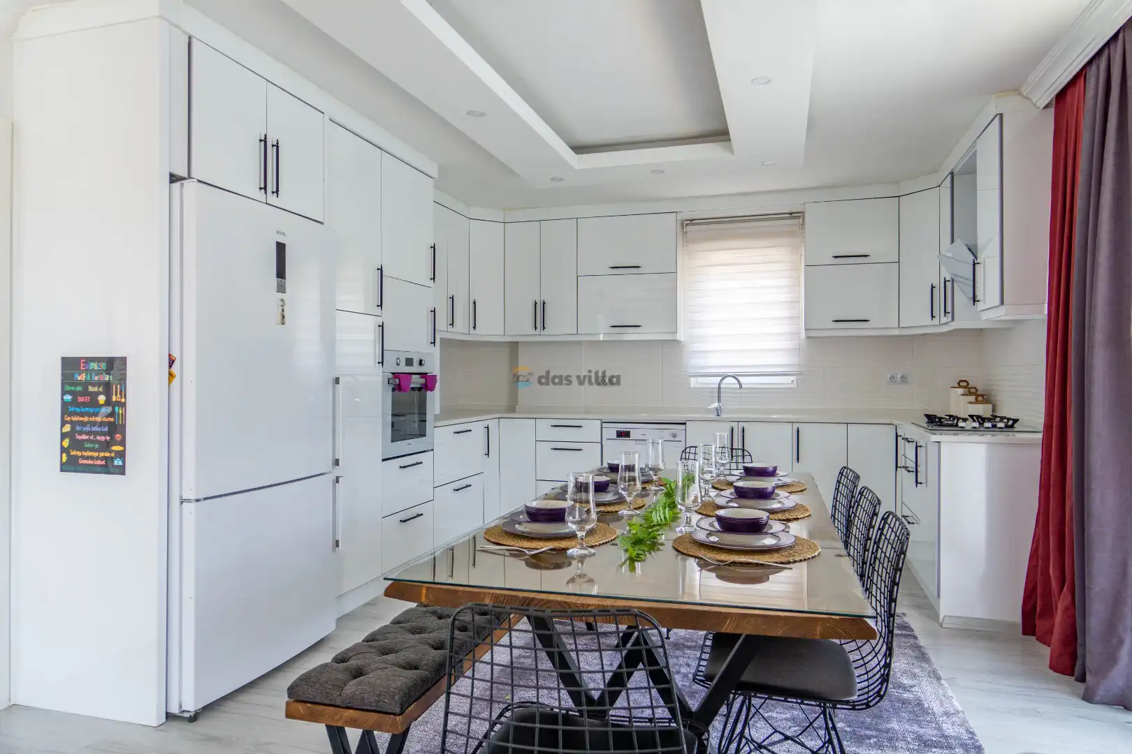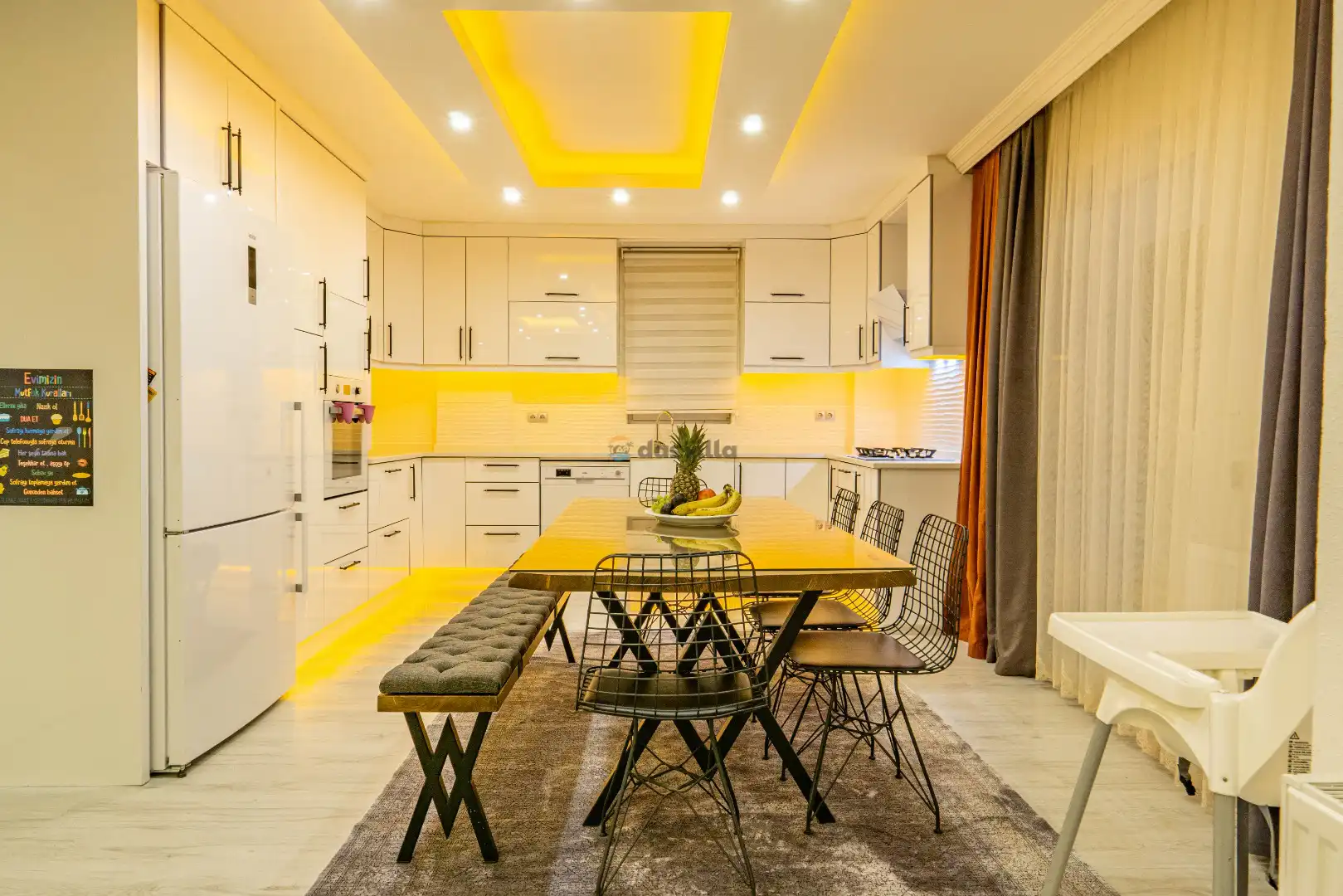 - Amerikan MutfakBulaşık MakinesiBuzdolabıFırınMikrodalga FırınAnkastre 4'lü OcakSu IsıtıcısıTencere ve Tava TakımıYemek TakımıKaşık Çatal Bıçak TakımıBardak TakımıYemek MasasıTost Makinesi