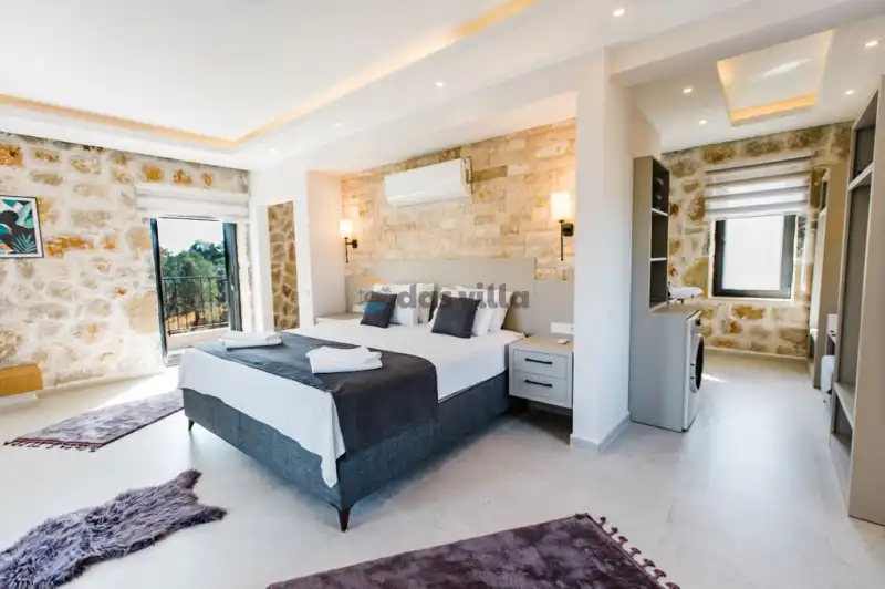 Villa Ersan 1, Kalkan'ın Patara bölgesinde yer almaktadır. 2 yatak odalı ve 4 kişilik kapasiteye sahiptir. Villamız muhteşem bir doğa manzarasına sahip olmakla birlikte özenli lüks dekoru ve modern tasarımı sayesinde keyifli günler geçirecek ve siz değerli müşterilerimiz tatilinizin bitmesini hiç istemeyeceksiniz. Villamızın modern mutfağı, eksiksiz araç-gereçleri ve konforlu eşyaları sayesinde kendinizi evinizde gibi hissedebilecek ve rahat bir tatil geçirme imkanı bulabileceksiniz.