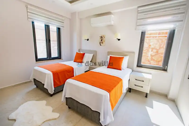 Villa Ersan 4, Kalkan'ın Patara bölgesinde yer almaktadır. 2 yatak odalı ve 4 kişilik kapasiteye sahiptir. Villamız muhteşem bir doğa manzarasına sahip olmakla birlikte özenli lüks dekoru ve modern tasarımı sayesinde keyifli günler geçirecek ve siz değerli müşterilerimiz tatilinizin bitmesini hiç istemeyeceksiniz. Villamızın modern mutfağı, eksiksiz araç-gereçleri ve konforlu eşyaları sayesinde kendinizi evinizde gibi hissedebilecek ve rahat bir tatil geçirme imkanı bulabileceksiniz.