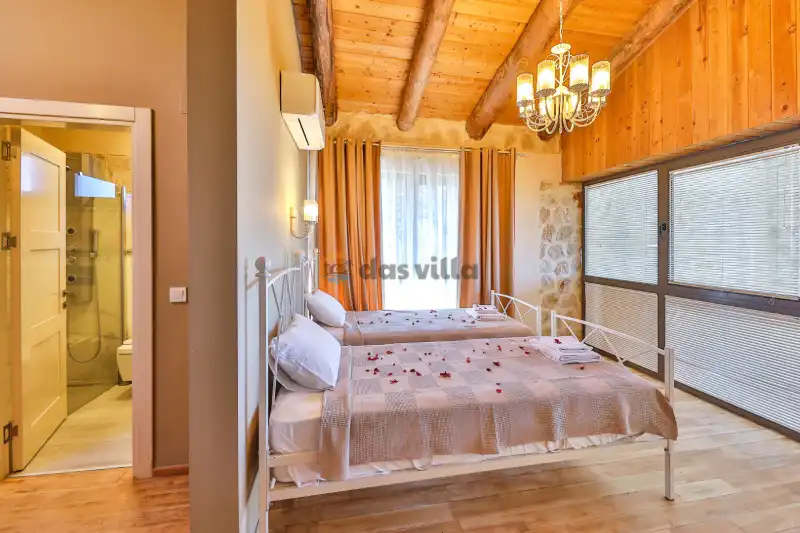 Villa Flora taş mimarisi ile en ince ayrıntısına kadar düşünülmüş olan lüks villamızın 2 süit yatak odasında da jakuzi keyfi yapabilirsiniz. Villamız özel havuzu ve geniş bahçesi ile misafirlerimizin kiralık yazlık villa tercihlerinden bir tanesidir.