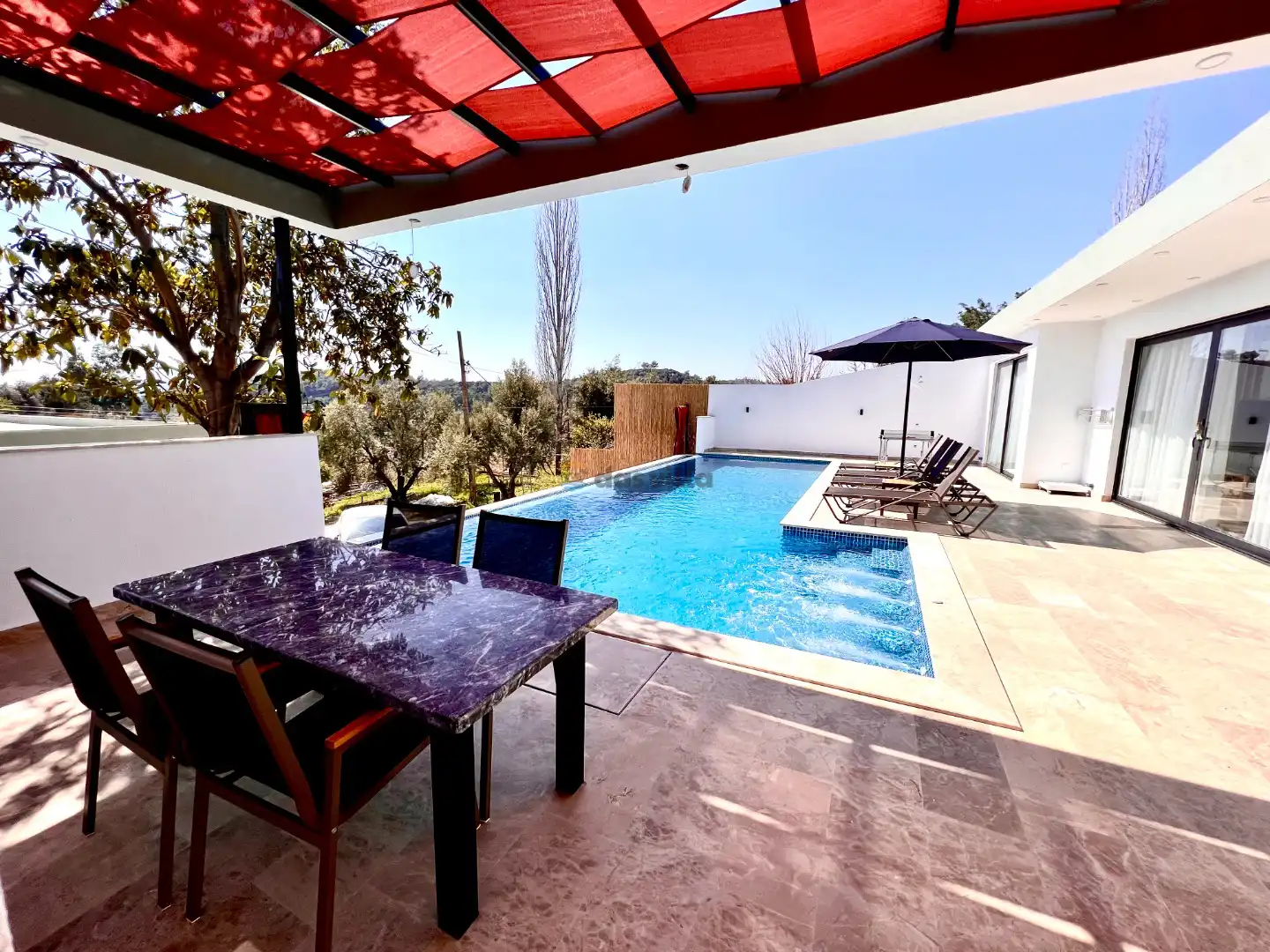 - Özel Yüzme HavuzuŞezlongŞemsiyeSehpa (Dış Mekan)Yemek Masası (Dış Mekan)Barbekü / Mangal