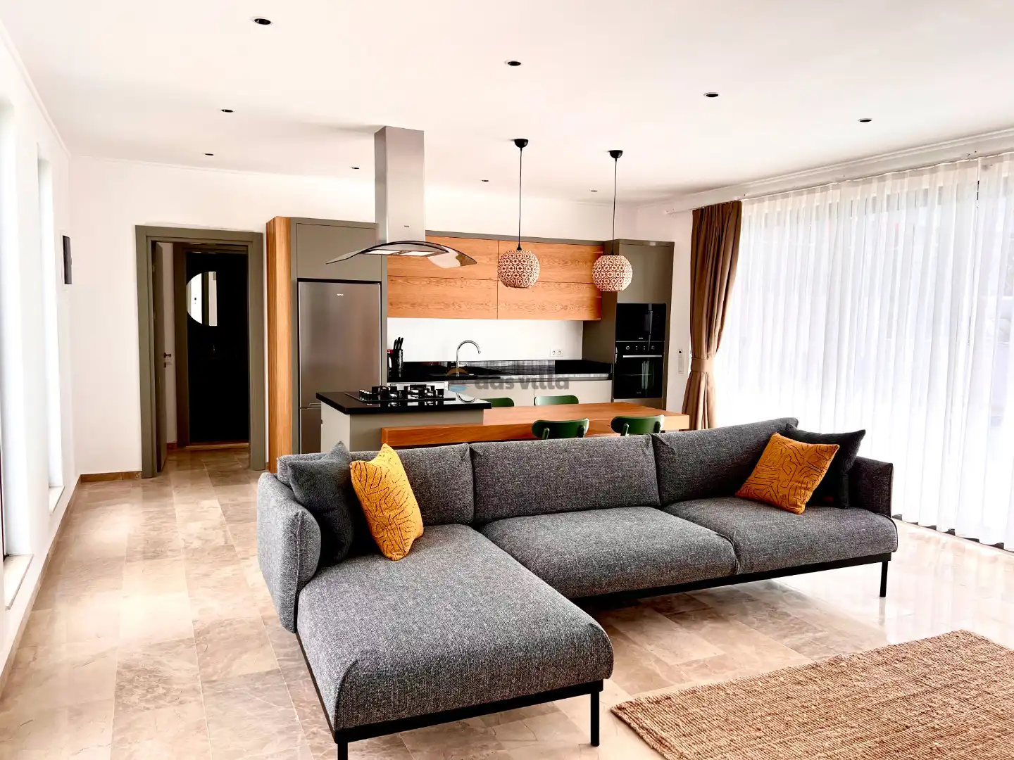 - Amerikan MutfakBulaşık MakinesiBuzdolabıFırınMikrodalga FırınAnkastre 4'lü OcakSu IsıtıcısıTencere ve Tava TakımıYemek TakımıKaşık Çatal Bıçak TakımıBardak TakımıYemek MasasıTost Makinesi