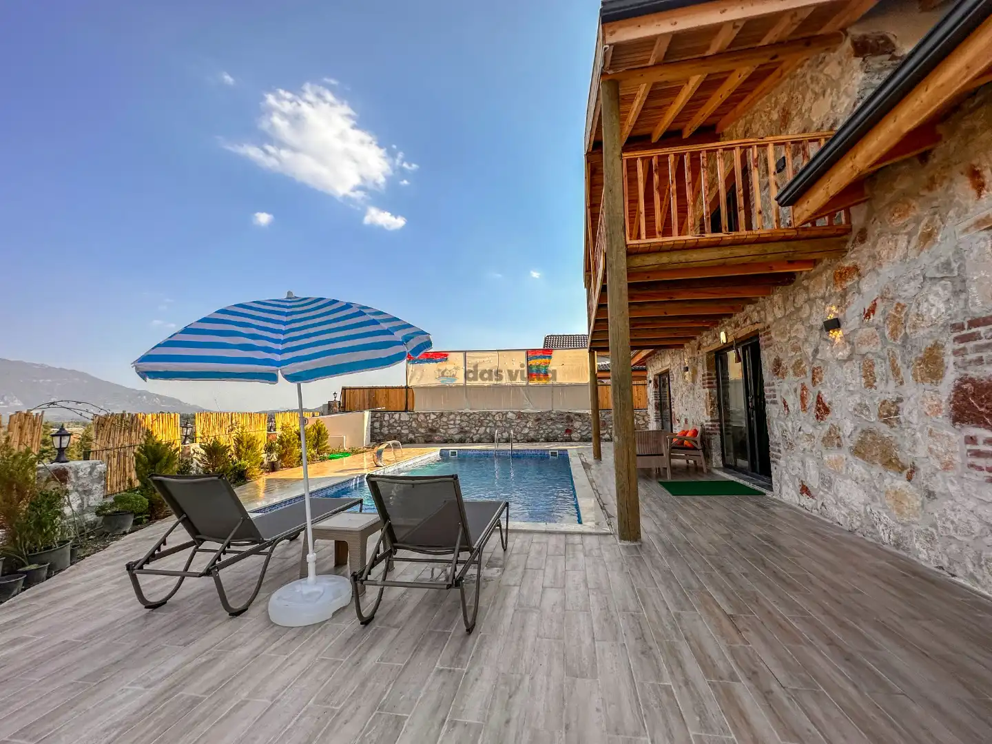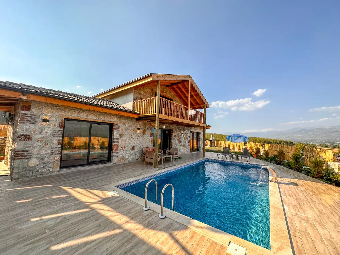 - Özel Yüzme HavuzuŞezlongŞemsiyeSehpa (Dış Mekan)Yemek Masası (Dış Mekan)Barbekü / Mangal