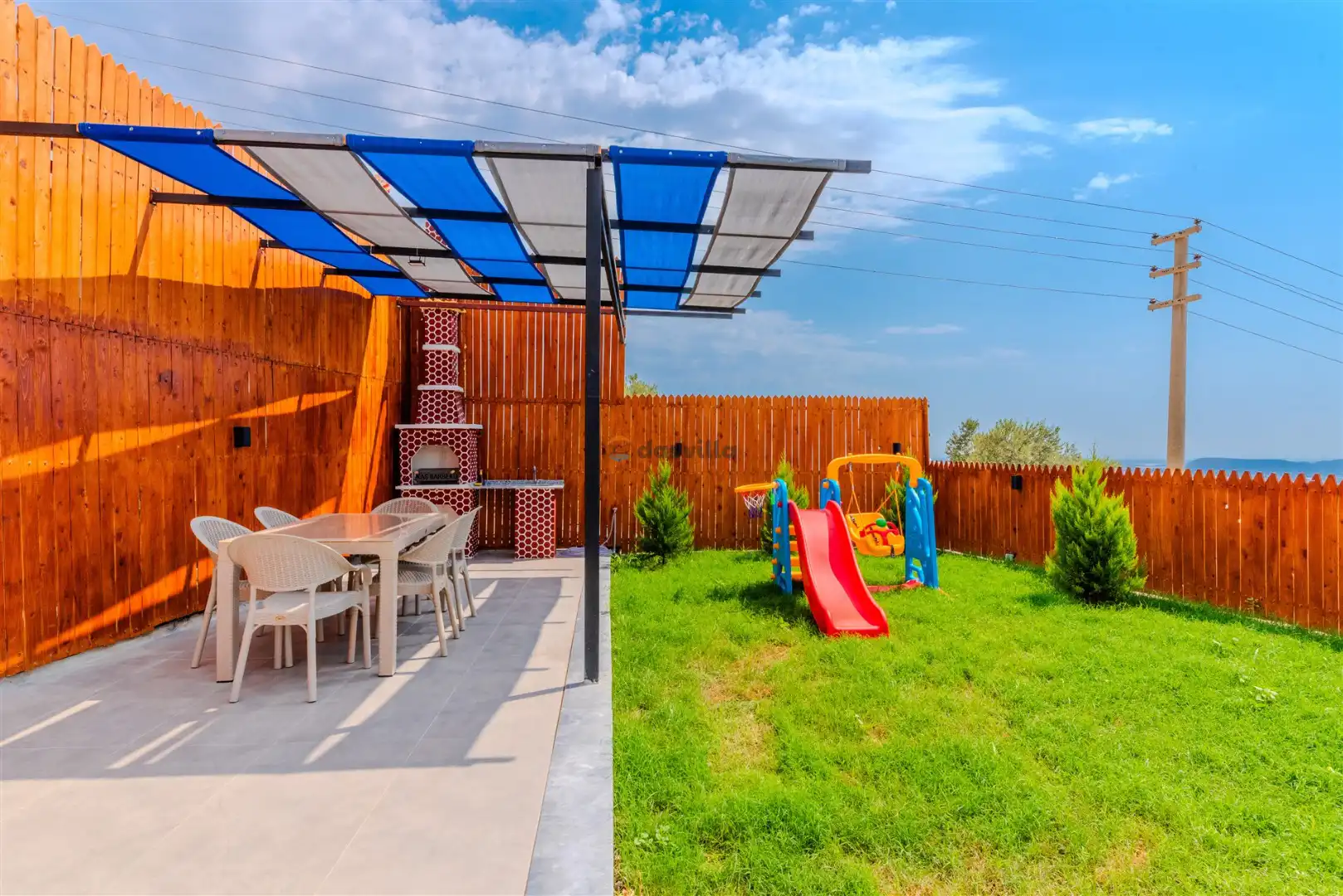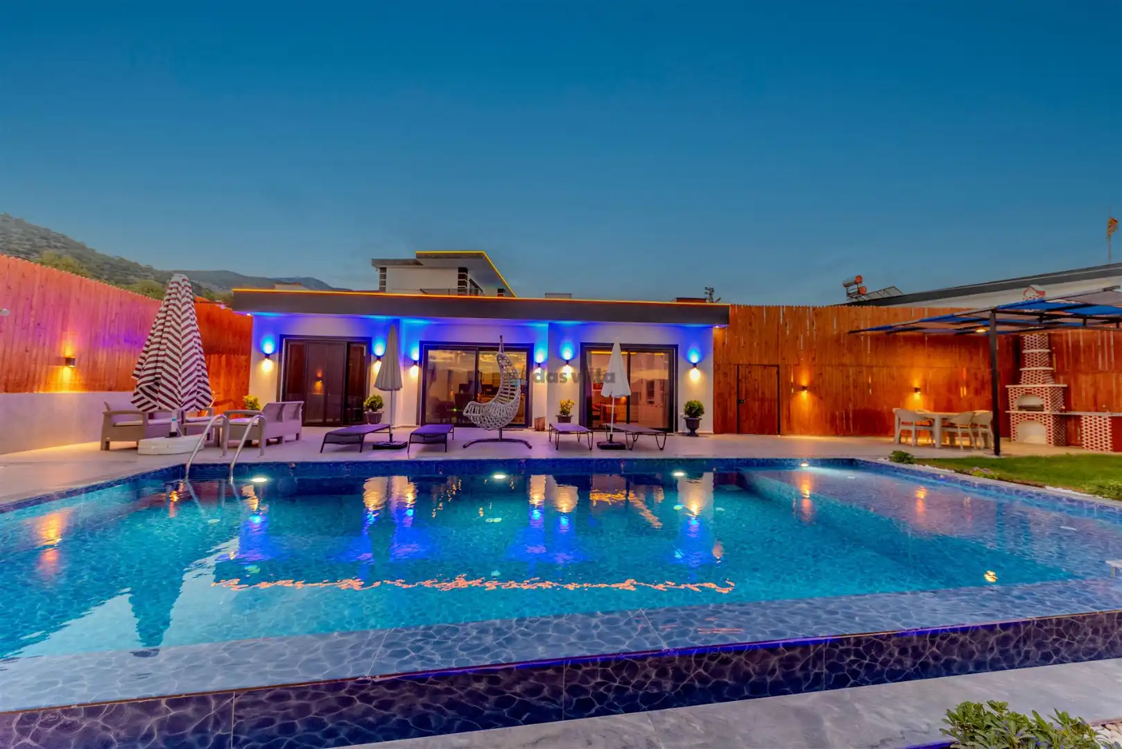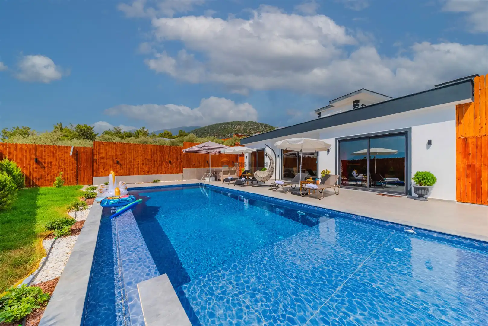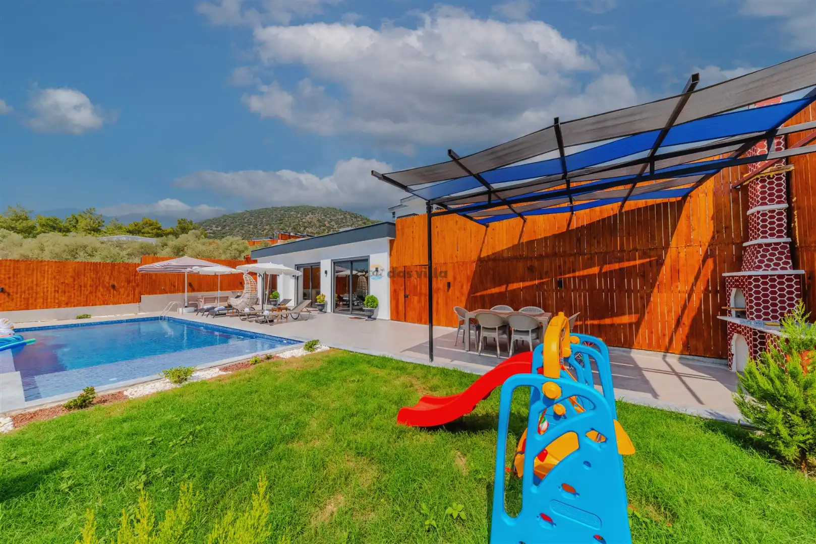 - Özel Yüzme HavuzuŞezlongŞemsiyeSehpa (Dış Mekan)Yemek Masası (Dış Mekan)Barbekü / Mangal