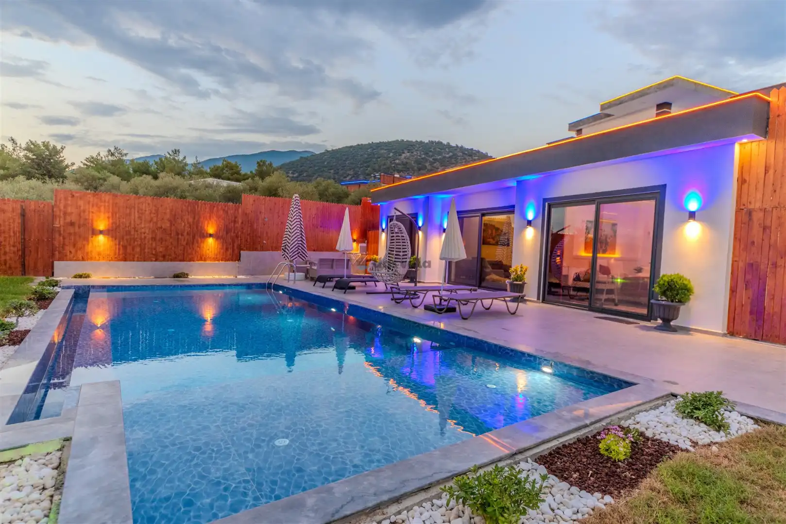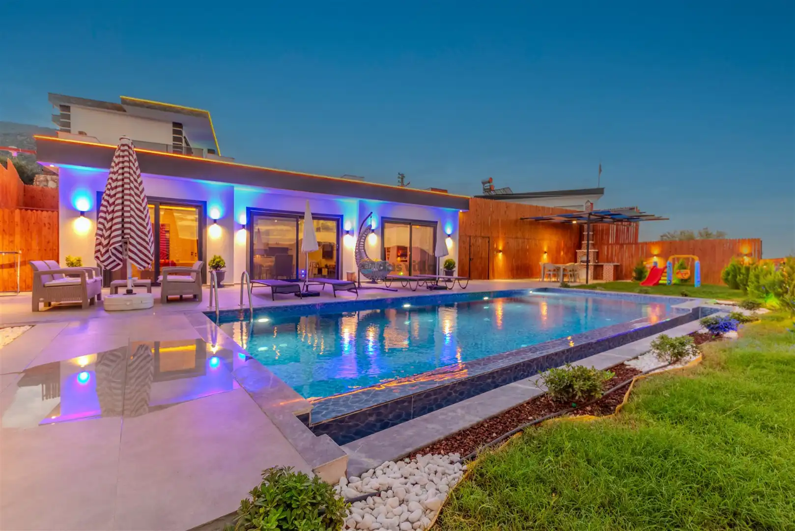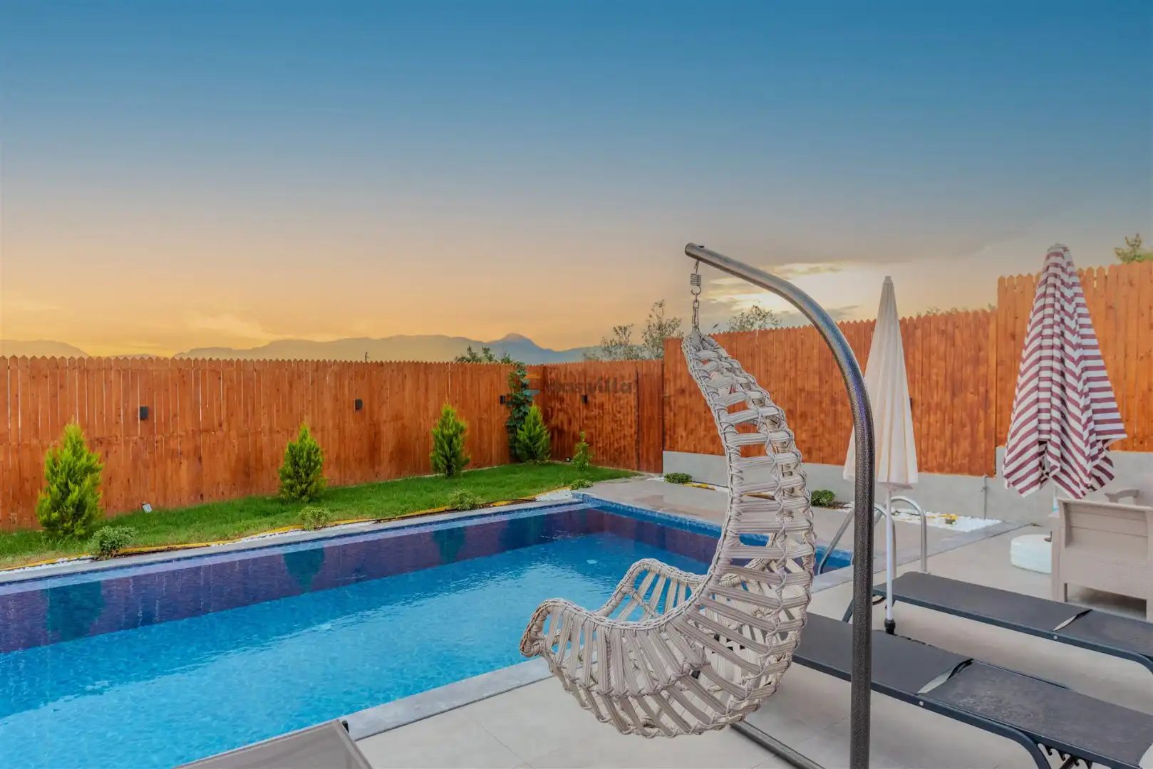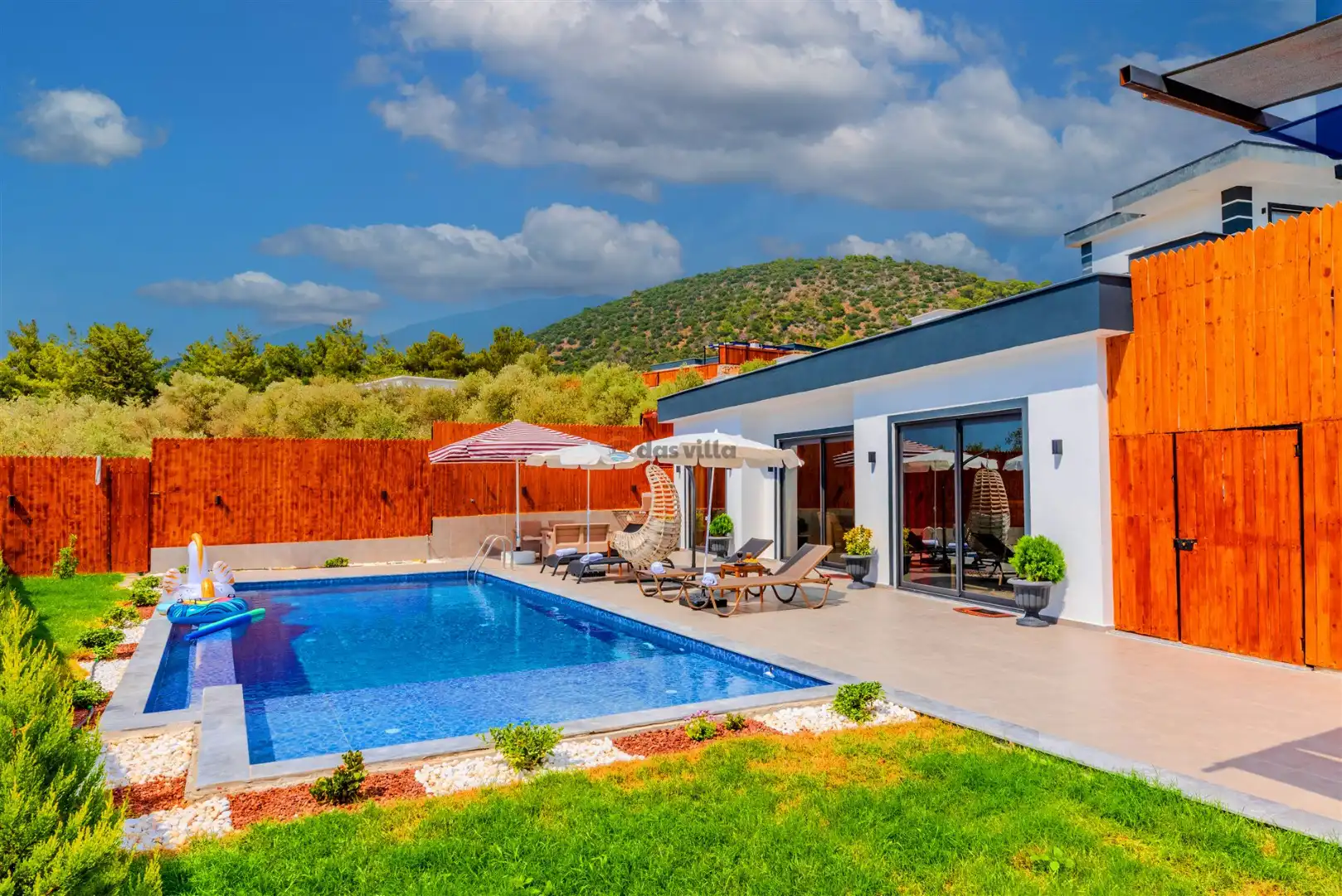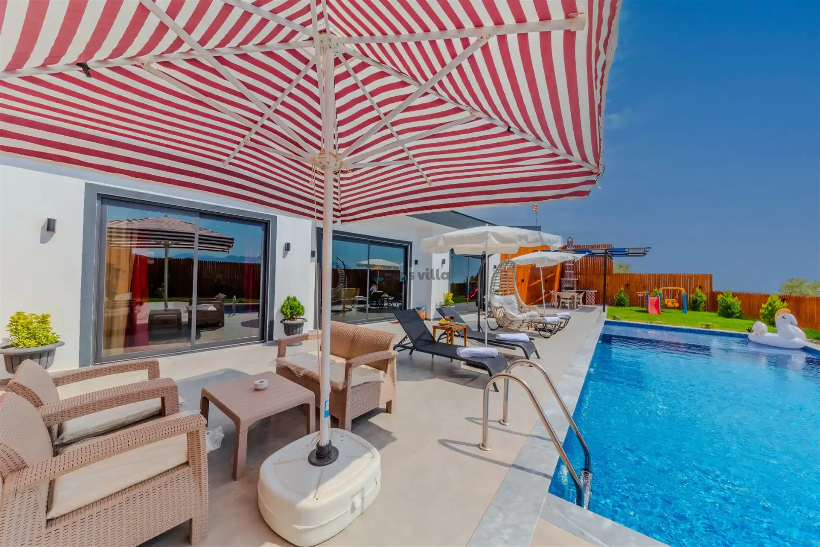 - Özel Yüzme HavuzuŞezlongŞemsiyeSehpa (Dış Mekan)Yemek Masası (Dış Mekan)Barbekü / Mangal