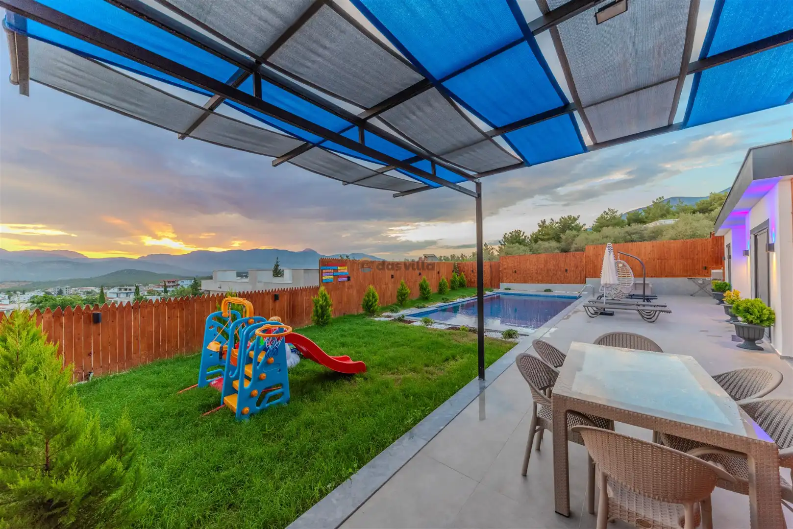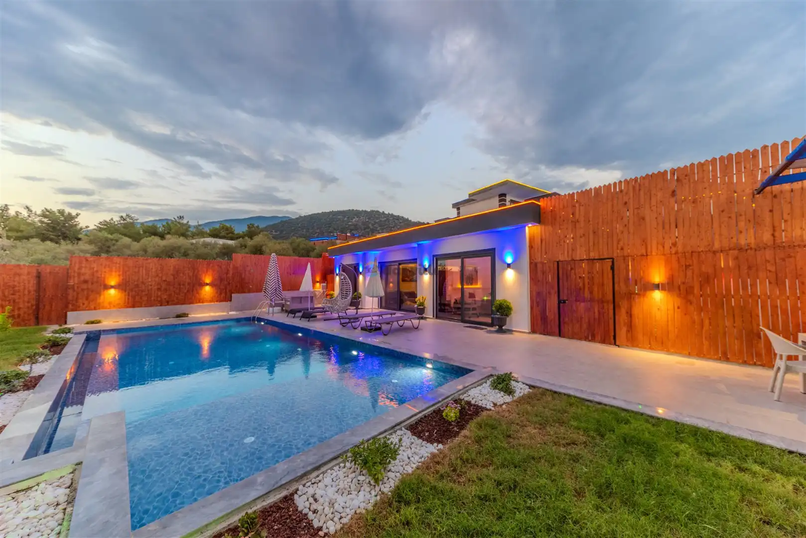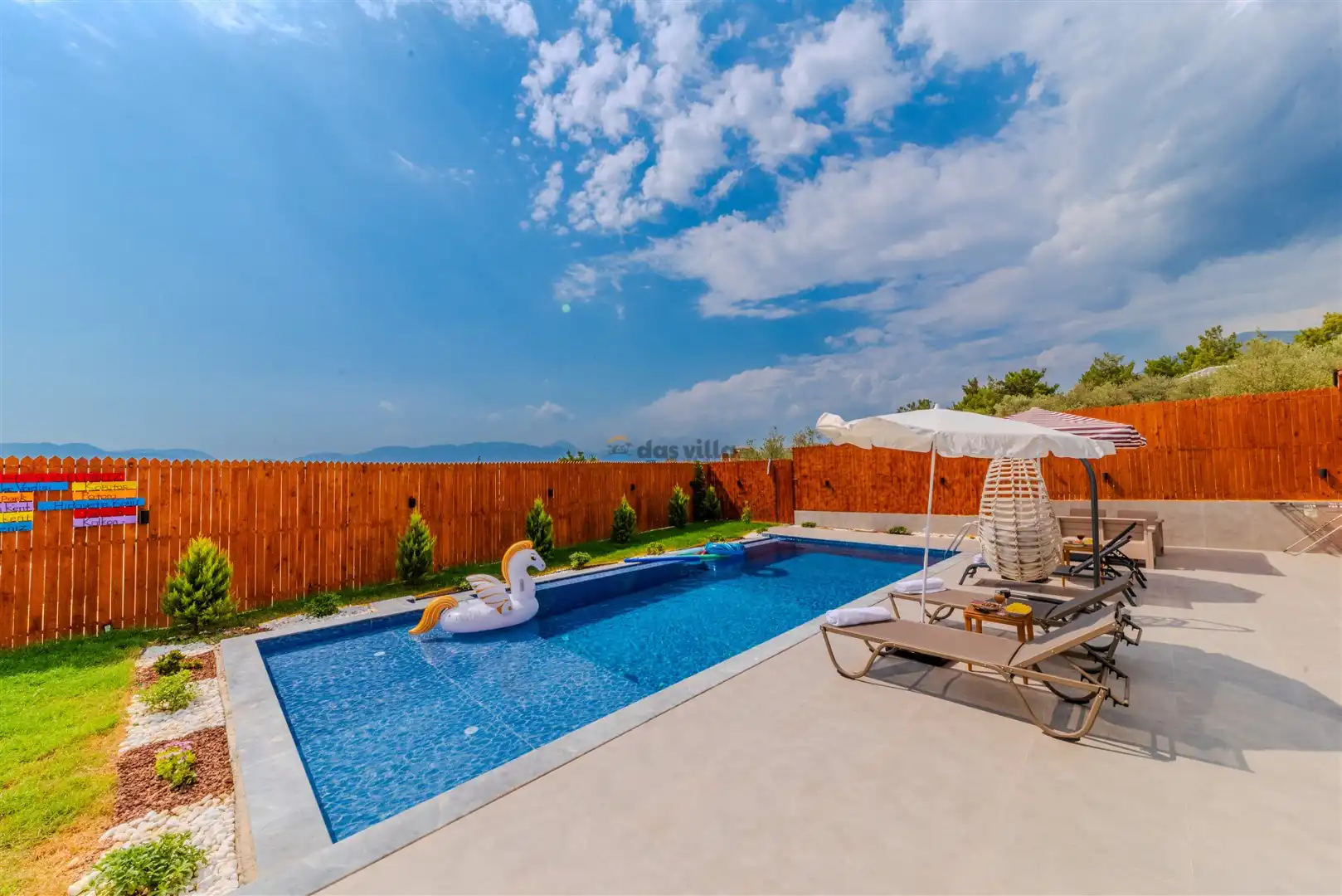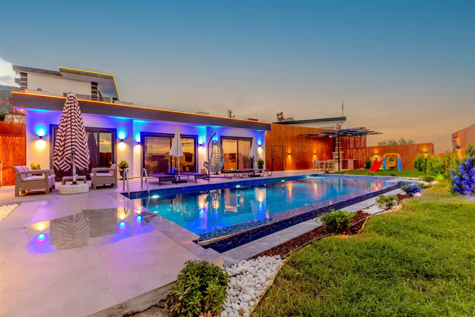 - Özel Yüzme HavuzuŞezlongŞemsiyeSehpa (Dış Mekan)Yemek Masası (Dış Mekan)Barbekü / Mangal