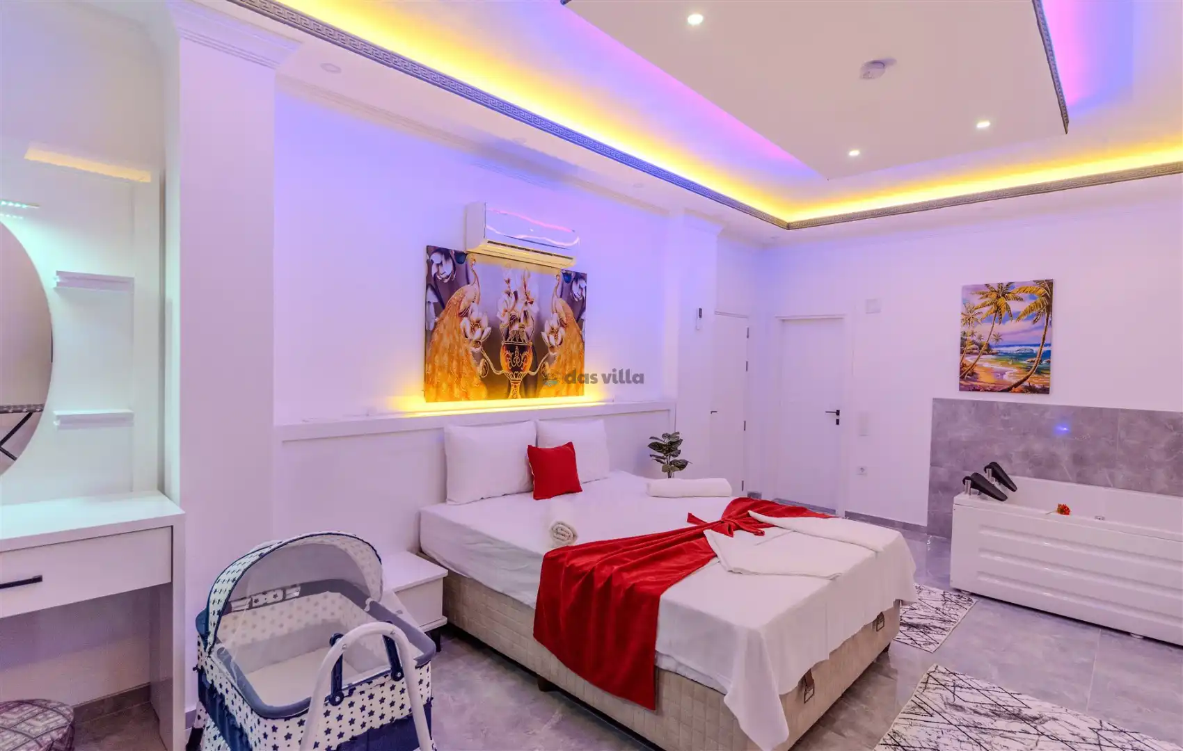 - Özel BahçeliFull EşyalıHavuz ve Bahçe Bakımıİnternet BağlantısıJakuziOtopark / Park YeriÜtü / Ütü Masası