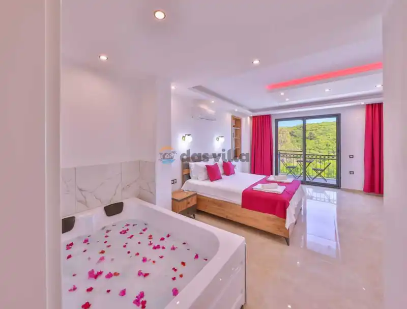 Villa Jasminn Kaş bölgesinde bulunmaktadır. 3 yatak odası ve 6 kişilik kapasitesiyle sizeözel bir villadır. Villamızın özenli lüks dekoru, ince dokunuşları ve dizaynı sayesinde tatiliniz keyifli, huzurlu ve eğlenceli bir hale gelecektir ve siz değerli misafirlerimizde tatilinizin hiç bitmemesi isteğini uyandıracaktır. Villamızın havuz ve bahçe kısmı korunaklıolup havuz keyfini rahatça çıkarmanızı sağlayacaktır. Doğayla iç içe olan villamız da bulunanjakuzi sayesinde ruhunuzu ve bedeninizi dinlendirme fırsatı bulacaksınız