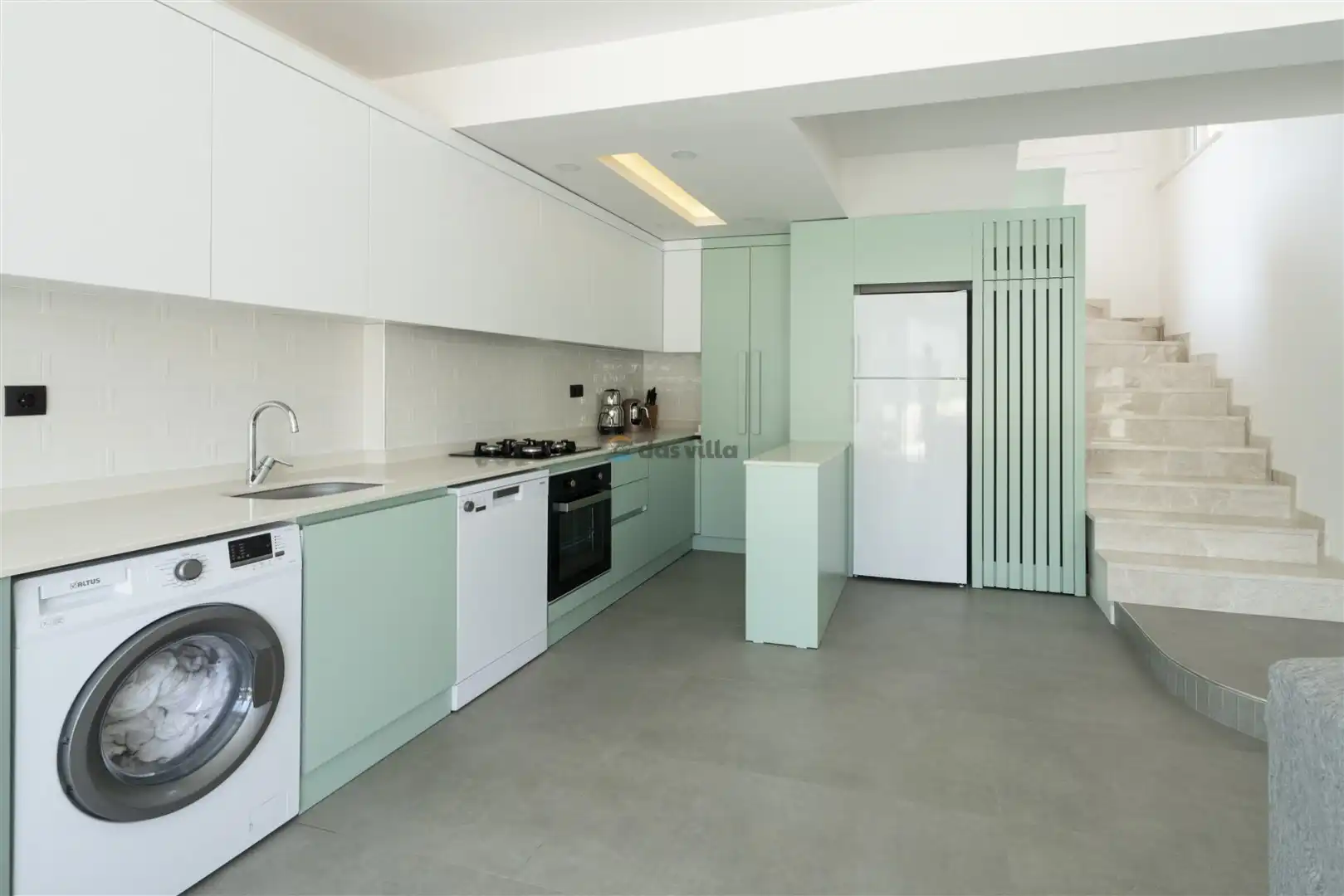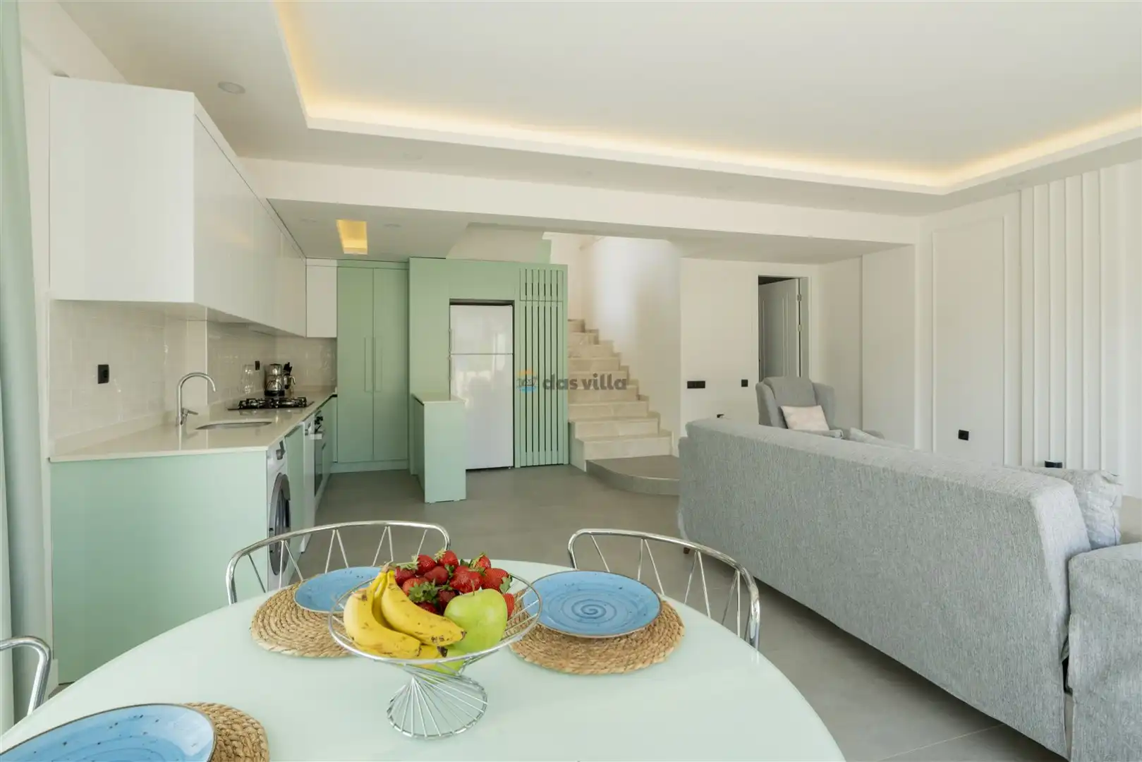 - Amerikan MutfakBulaşık MakinesiBuzdolabıFırınMikrodalga FırınAnkastre 4'lü OcakSu IsıtıcısıTencere ve Tava TakımıYemek TakımıKaşık Çatal Bıçak TakımıBardak TakımıYemek MasasıTost Makinesi