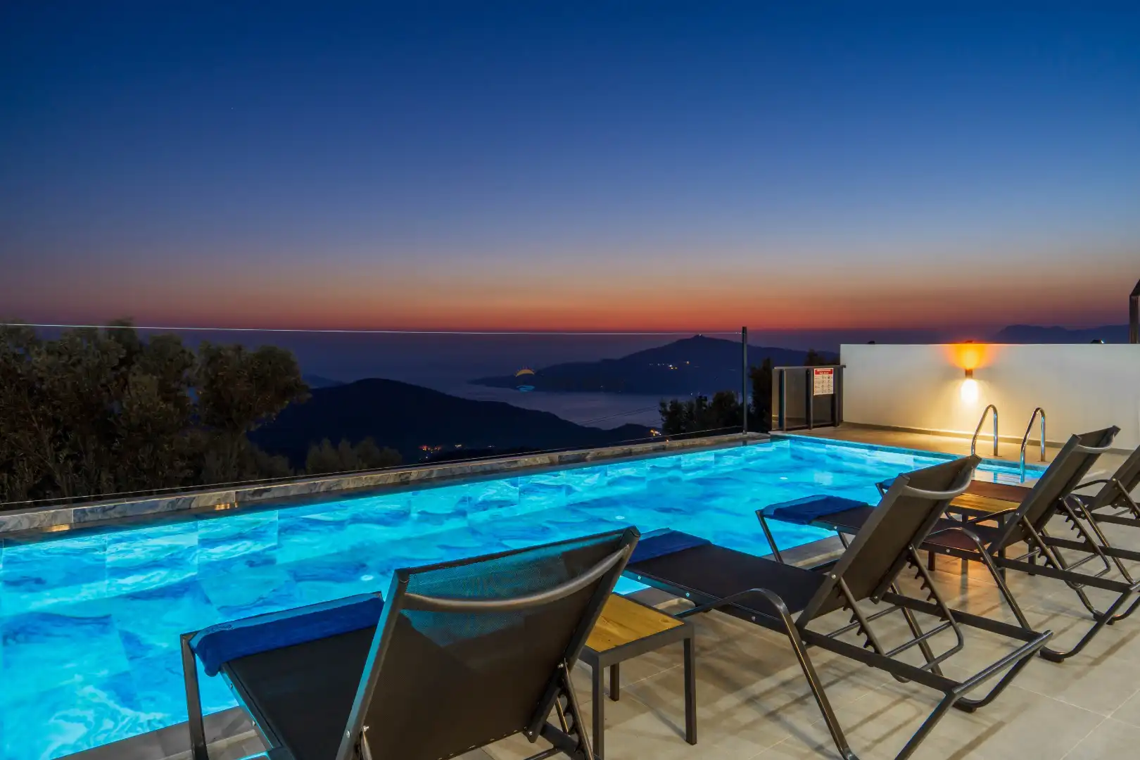 Villa Karbelen, Kalkan Kördere mevkiinde, 2 yatak odalı 4 kişi kapasiteli deniz manzaralı size özel kiralık villamızdır. Villamızın özenli lüks dekoru, ince dokunuşları ve dizaynı sayesinde tatiliniz keyifli, huzurlu ve eğlenceli bir hale gelecektir ve siz değerli misafirlerimizde tatilinizin hiç bitmemesi isteğini uyandıracaktır. Doğayla iç içe olan villamızda bulunan Jakuzi sayesinde tatiliniz boyunca çok keyifli ve rahat günler geçirme fırsatı bulacaksınız. Balayı çiftlerimiz ve çekirdek ailelerimiz için modern ve lüks döşenmiş olan villamızın havuz ve bahçe kısmı korunaklı olup havuz keyfini rahatça çıkarmanıza olanak sağlar.