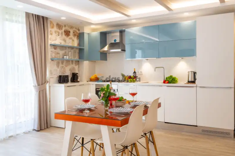 - Amerikan MutfakBulaşık MakinesiBuzdolabıFırınMikrodalga FırınAnkastre 4'lü OcakSu IsıtıcısıTencere ve Tava TakımıYemek TakımıKaşık Çatal Bıçak TakımıBardak TakımıYemek MasasıTost Makinesi
