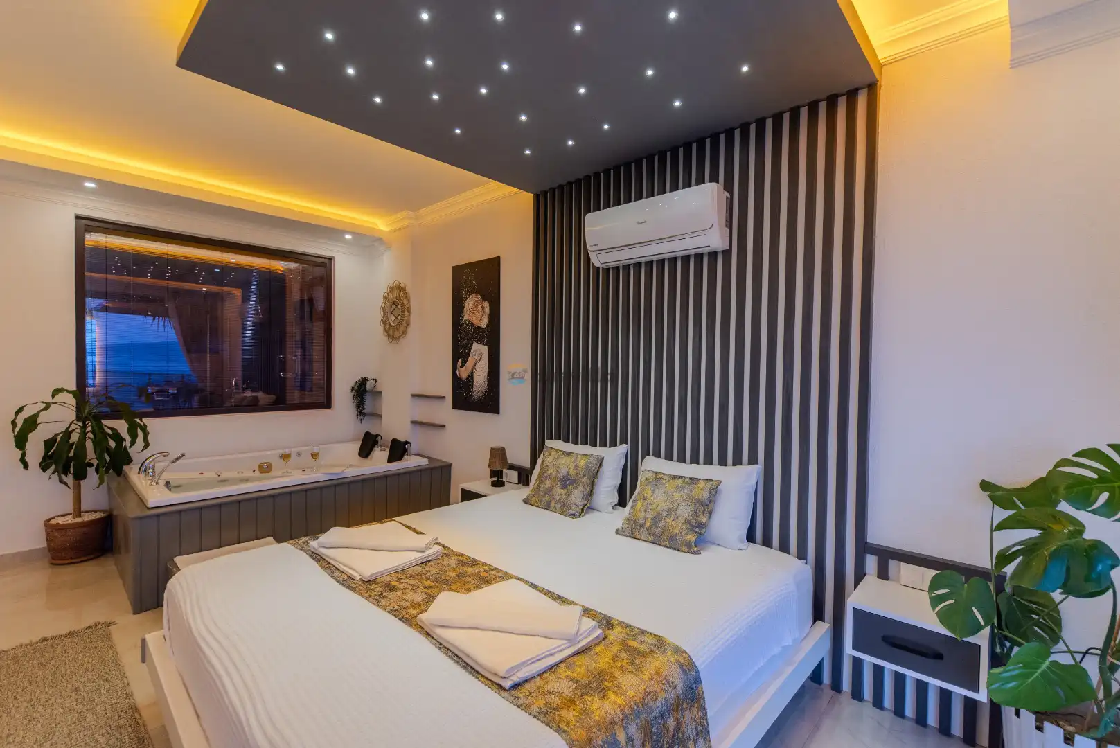 Villa Mancero, Kalkan Çavdır bölgesinde konumlandırılmış 5 kişi kapasiteli 2 yatak odalı villamızdır. Doğa ile iç içe bulunan villamız aileler ve arkadaş grupları için oldukça uygun bir seçenektir. Villamızda eğlenceli vakit geçirebileceğiniz masa tenisi, langırt, dart, tavla ve playStation vardır. Ayrıca villamızın yatak odasında yorgunluğunuzu atabileceğiniz jakuzisi ve saunası da bulunmaktadır.