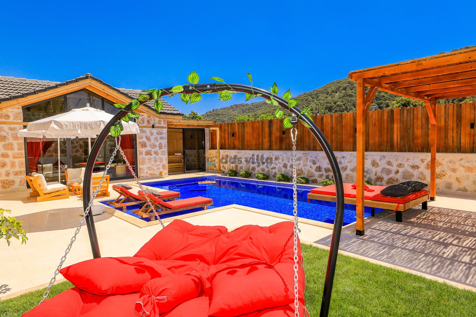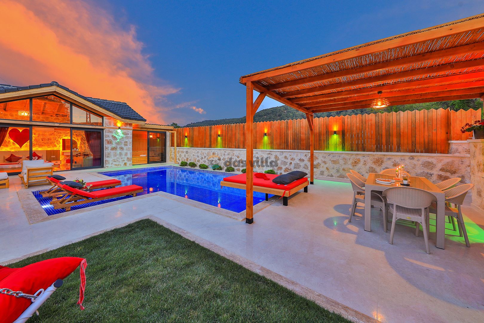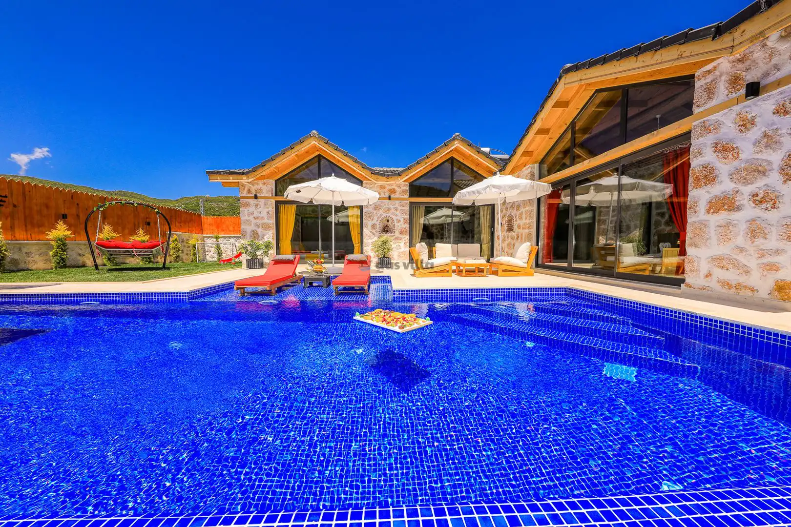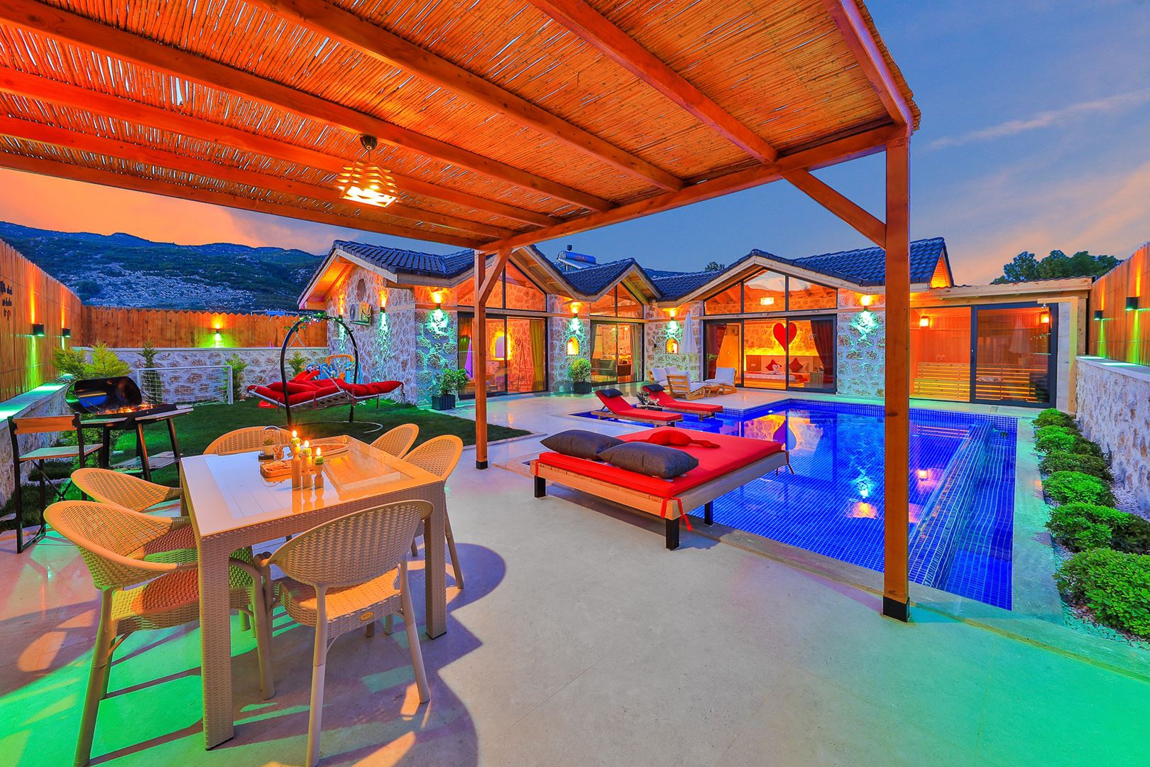 Villa Mevsim, Kalkan'ın Sarıbelen bölgesinde bulunmaktadır, 2 yatak odalı 5 kişi kapasiteli, modern dizayna sahip ve özellikle çocuklu aileler için dizayn edilmiş lüks villamız. Kalkan merkeze 15 dk mesafede olan villamız, muhteşem doğa manzarasına sahiptir. Villamızın geniş havuz terasının yanında yer alan büyük yeşil alanıhem çocukluaileler için hemde misafirlerimiz için güzel bir konfor sağlamaktadır. En ufak ayrıntısına kadar özenle dizayn edilmiş olan villamıza siz değerli misafirlerimizi beklemekteyiz.