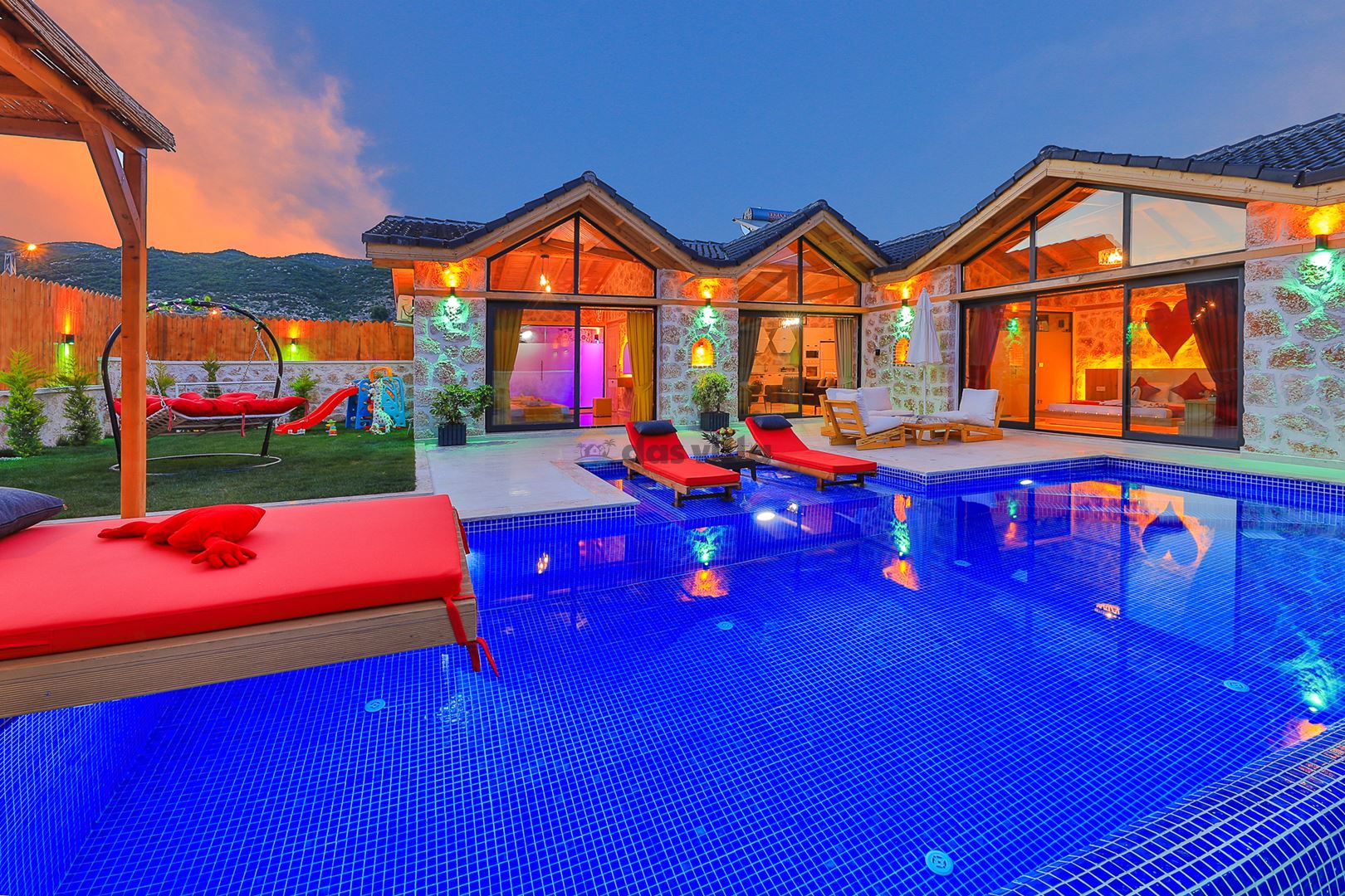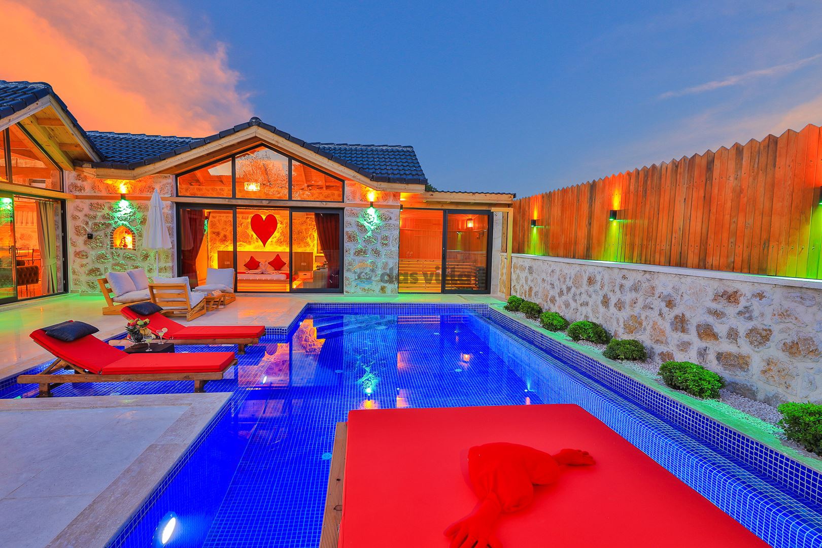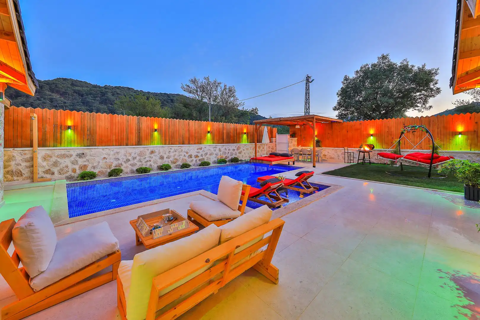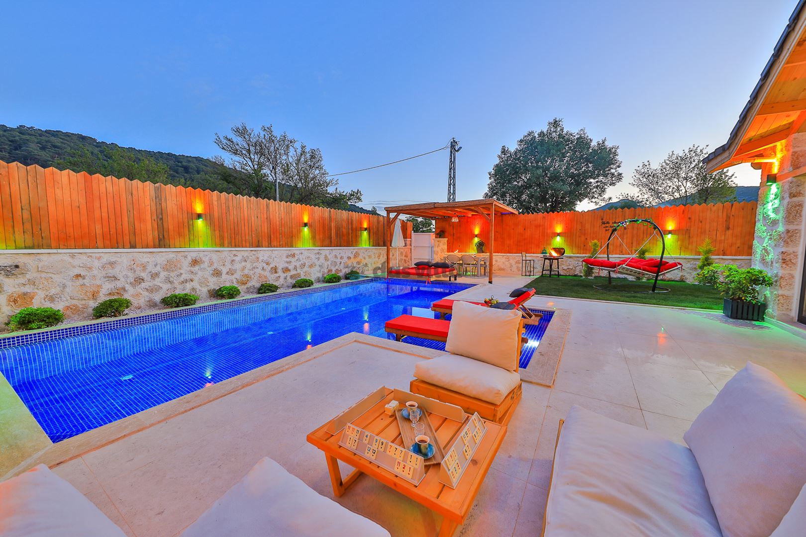 Villa Mevsim, Kalkan'ın Sarıbelen bölgesinde bulunmaktadır, 2 yatak odalı 5 kişi kapasiteli, modern dizayna sahip ve özellikle çocuklu aileler için dizayn edilmiş lüks villamız. Kalkan merkeze 15 dk mesafede olan villamız, muhteşem doğa manzarasına sahiptir. Villamızın geniş havuz terasının yanında yer alan büyük yeşil alanıhem çocukluaileler için hemde misafirlerimiz için güzel bir konfor sağlamaktadır. En ufak ayrıntısına kadar özenle dizayn edilmiş olan villamıza siz değerli misafirlerimizi beklemekteyiz.