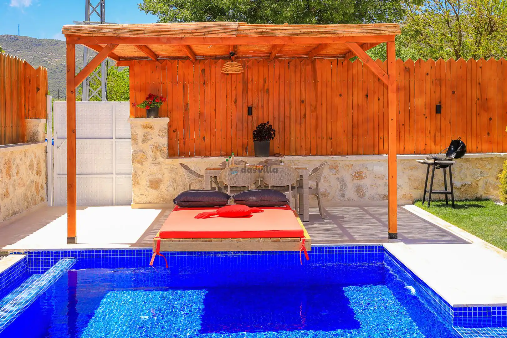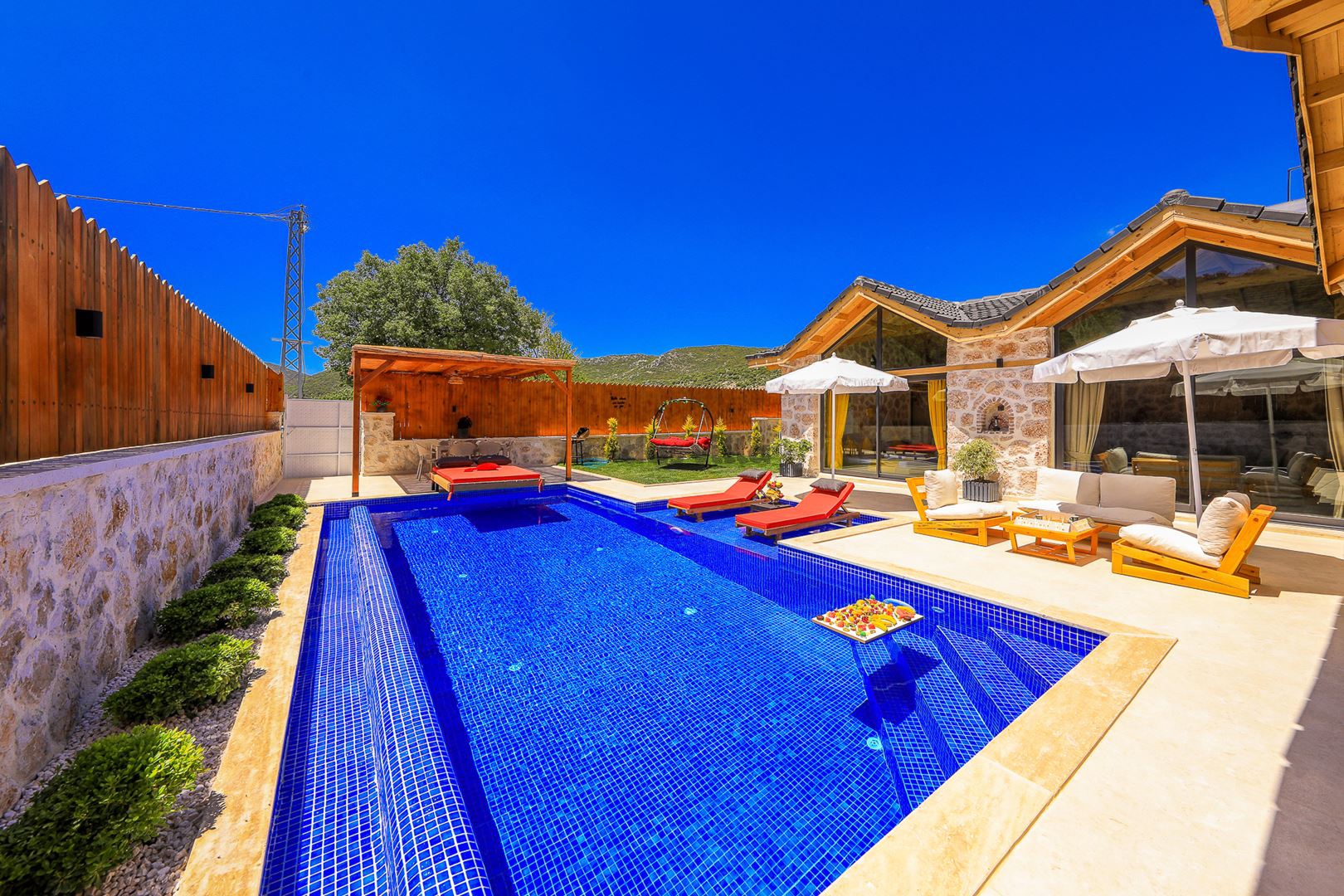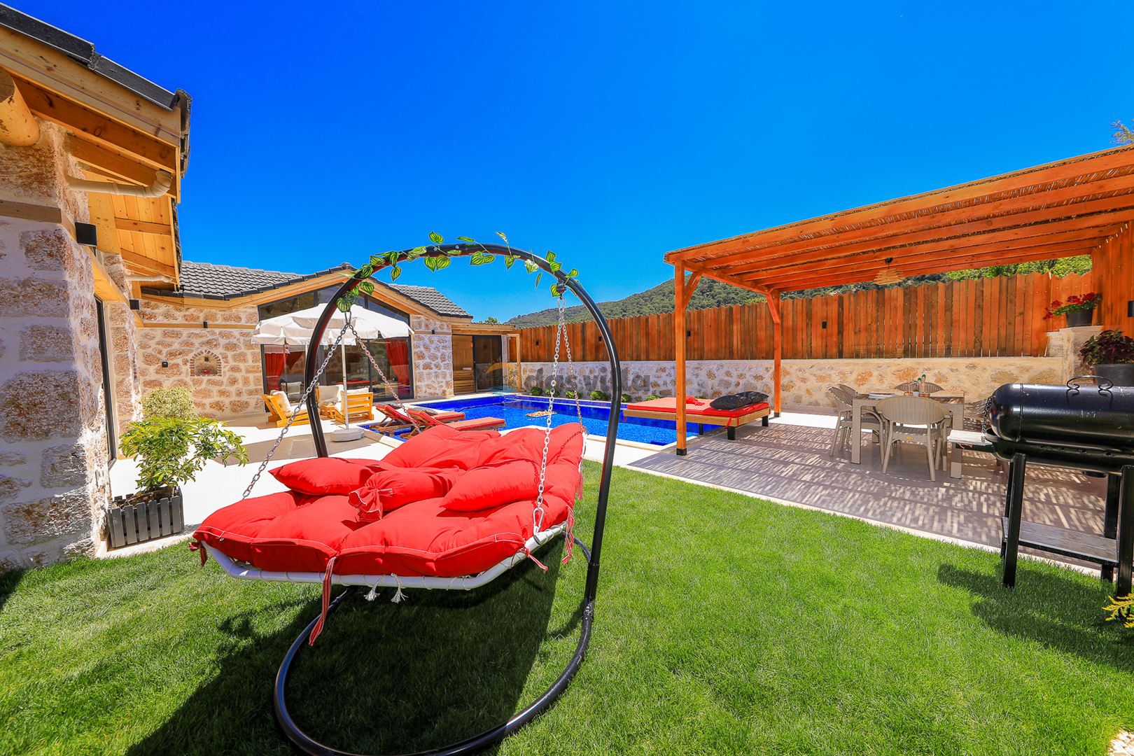 - Özel Yüzme HavuzuŞezlongŞemsiyeSehpa (Dış Mekan)Yemek Masası (Dış Mekan)Barbekü / Mangal