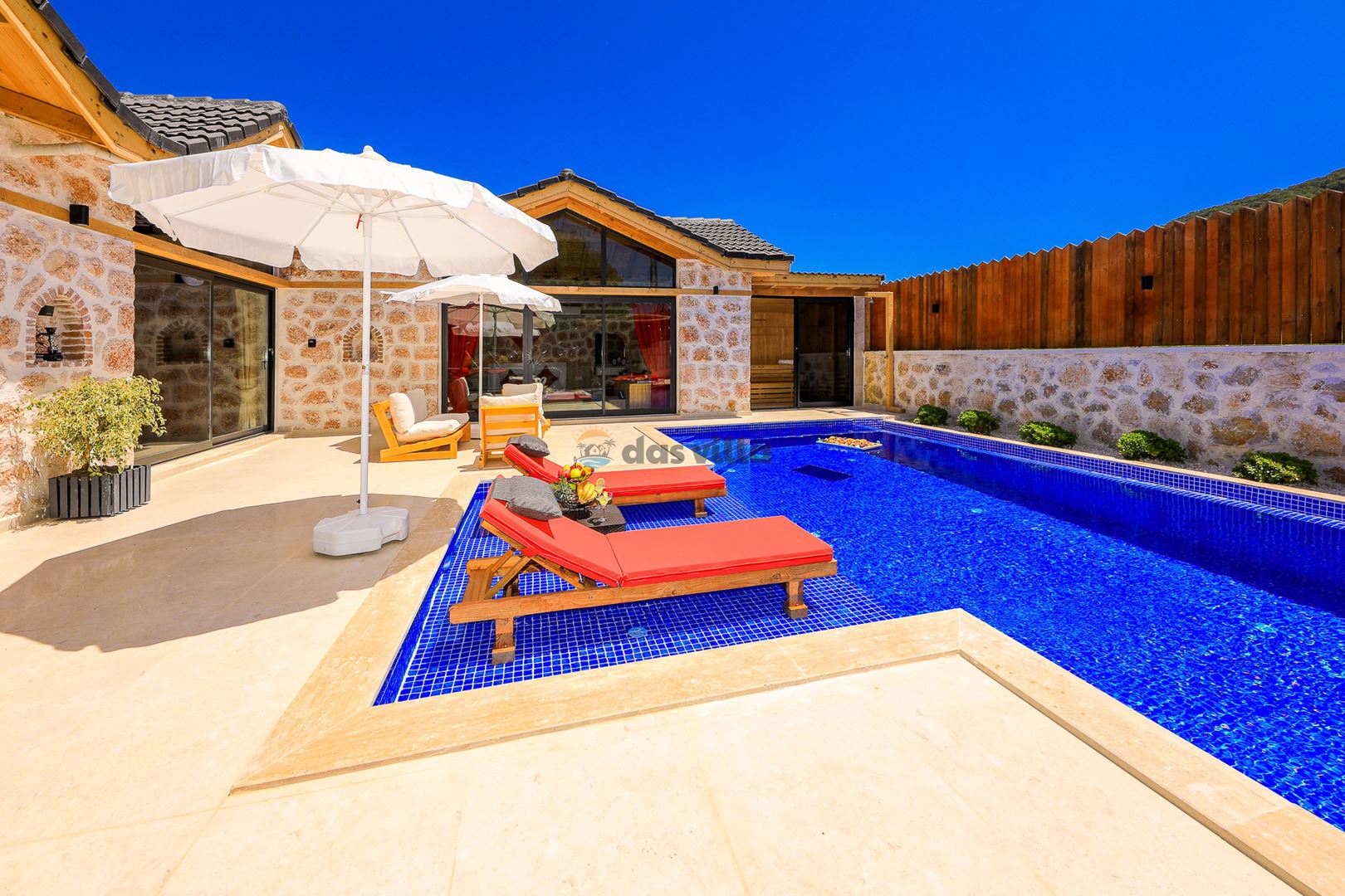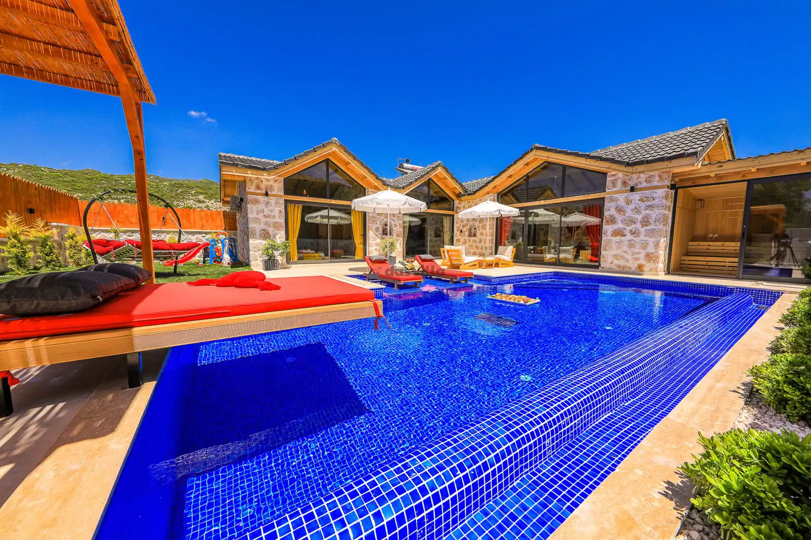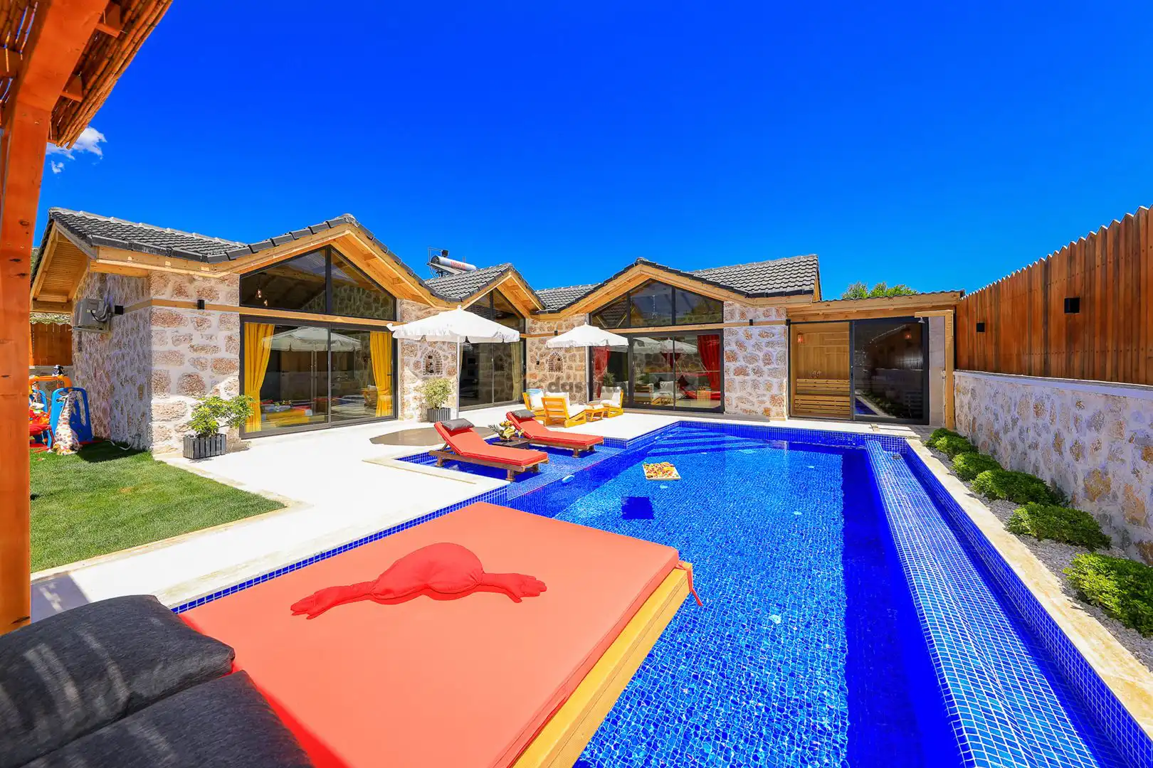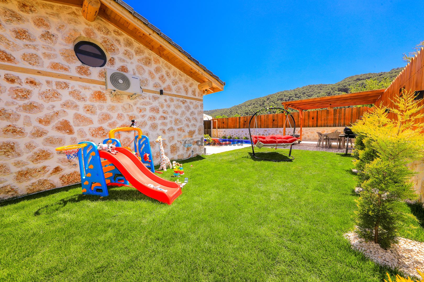 - Özel Yüzme HavuzuŞezlongŞemsiyeSehpa (Dış Mekan)Yemek Masası (Dış Mekan)Barbekü / Mangal
