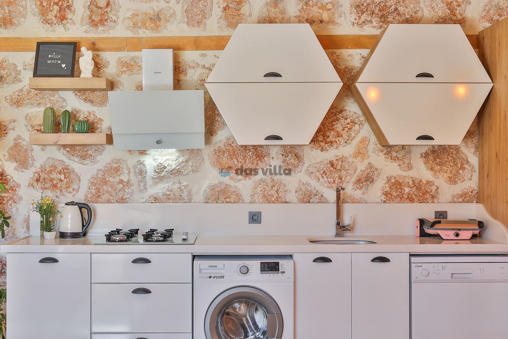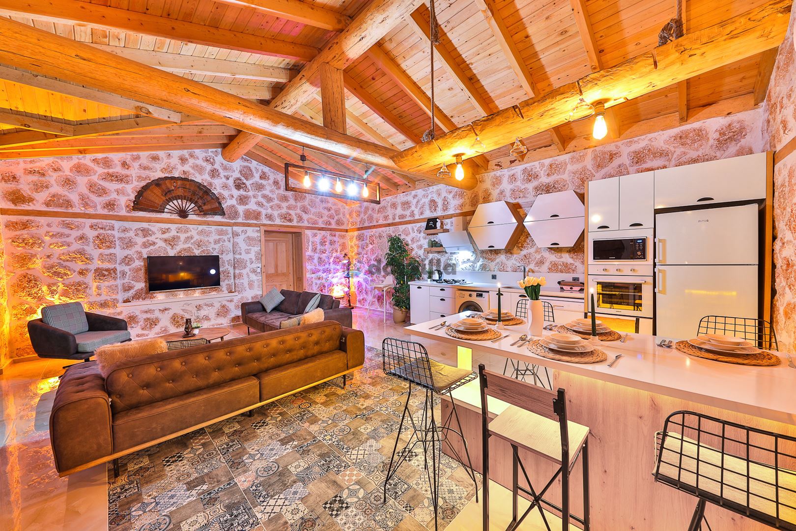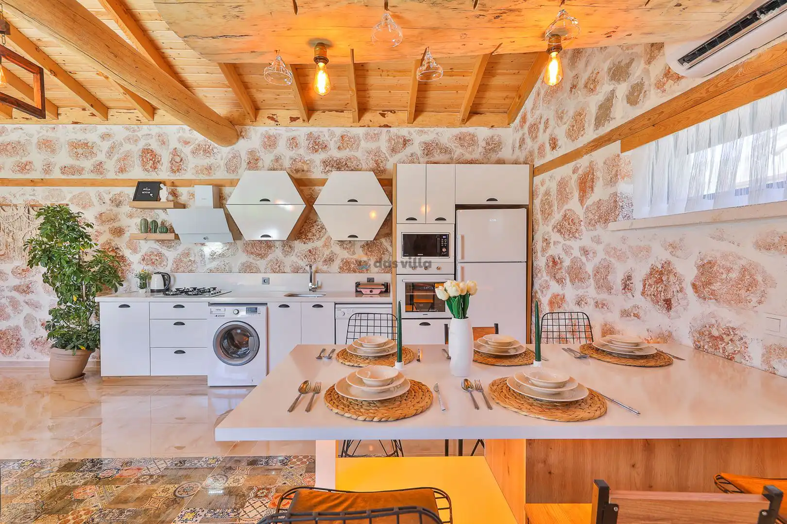 - Amerikan MutfakBulaşık MakinesiBuzdolabıFırınMikrodalga FırınAnkastre 4'lü OcakSu IsıtıcısıEkmek Kızartma MakinesiTencere ve Tava TakımıYemek TakımıKaşık Çatal Bıçak TakımıBardak TakımıYemek MasasıTost Makinesi