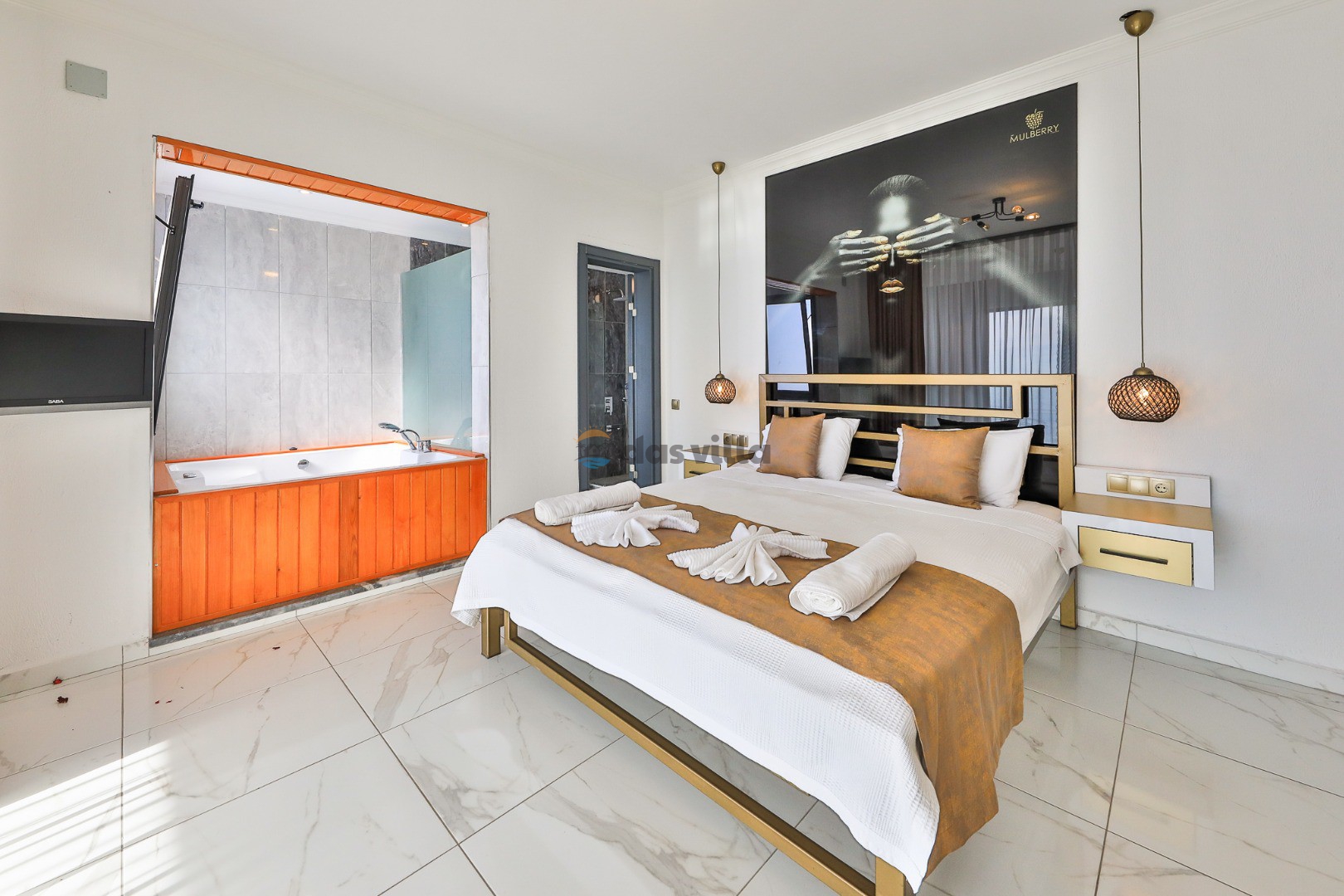 - Özel BahçeliFull EşyalıHavuz ve Bahçe Bakımıİnternet BağlantısıJakuziDeniz ManzarasıOtopark / Park YeriÜtü / Ütü MasasıJeneratörSonsuzluk Havuzu