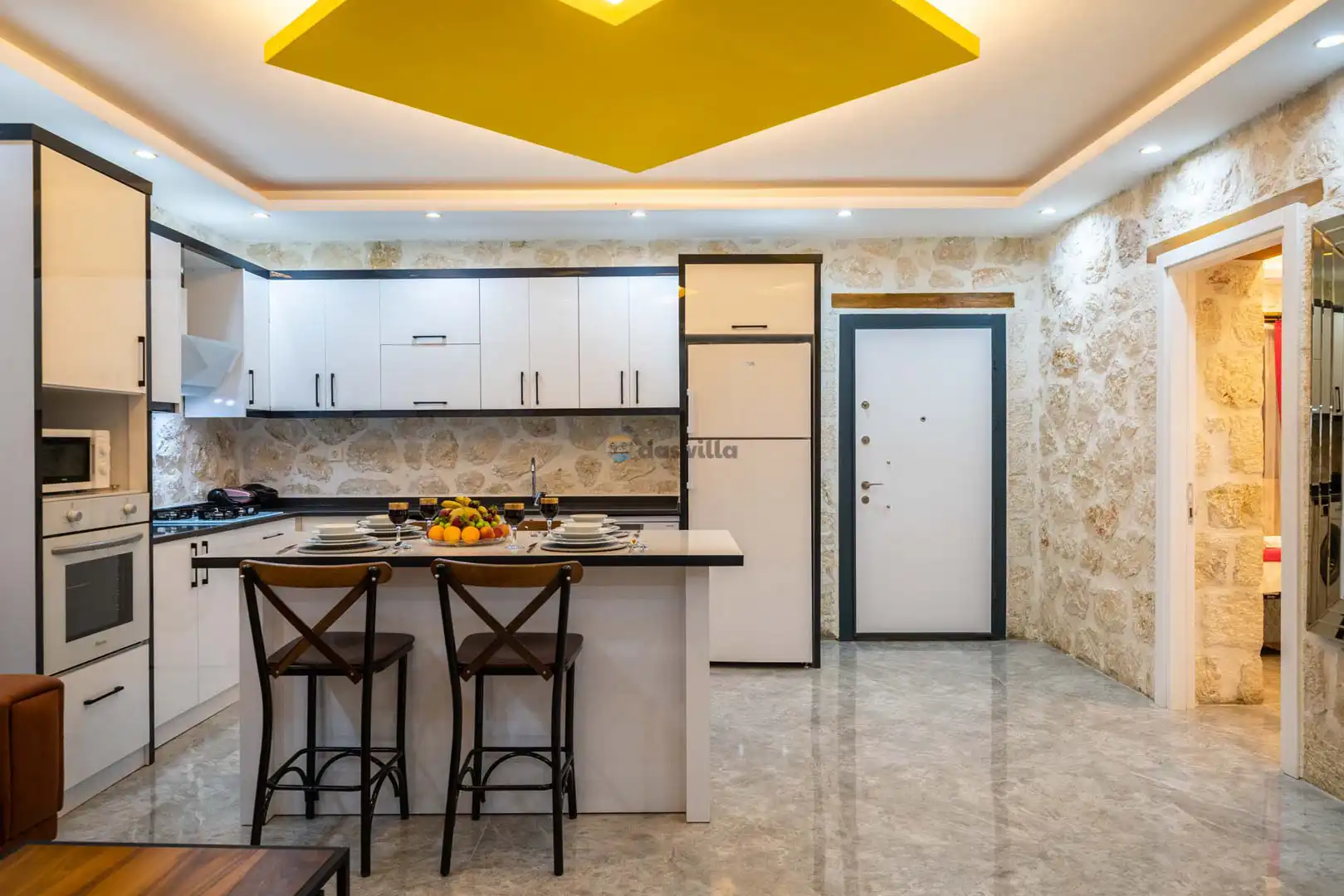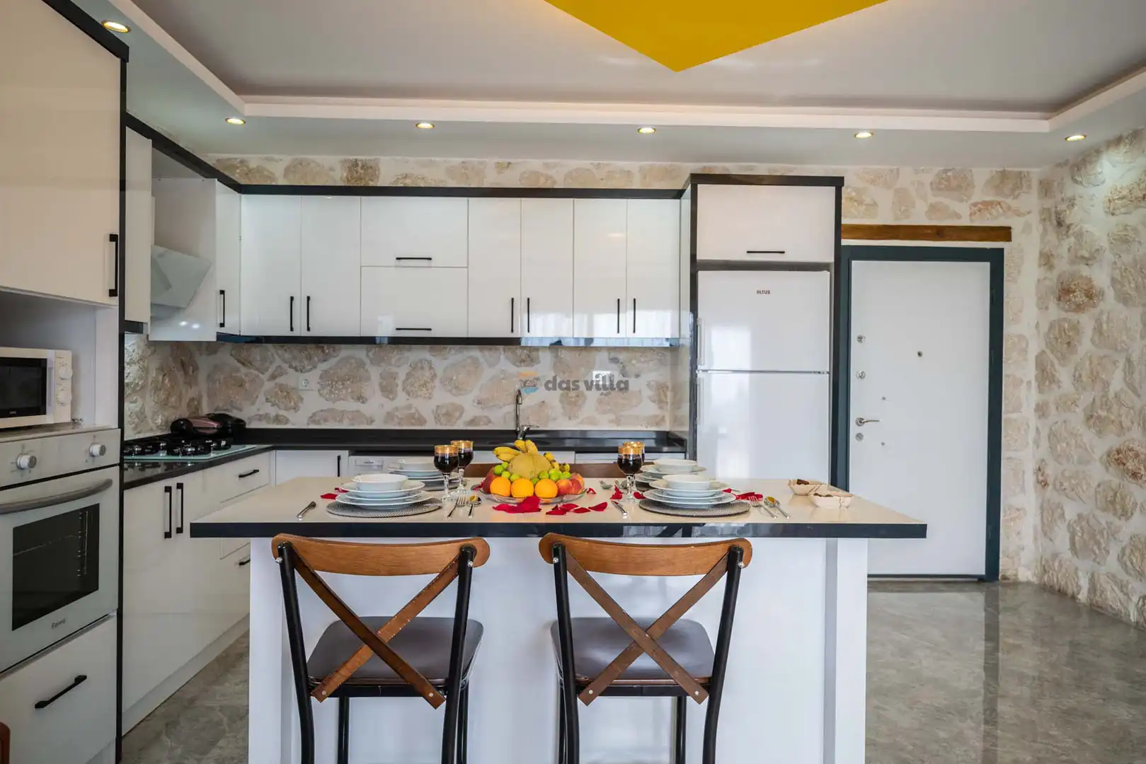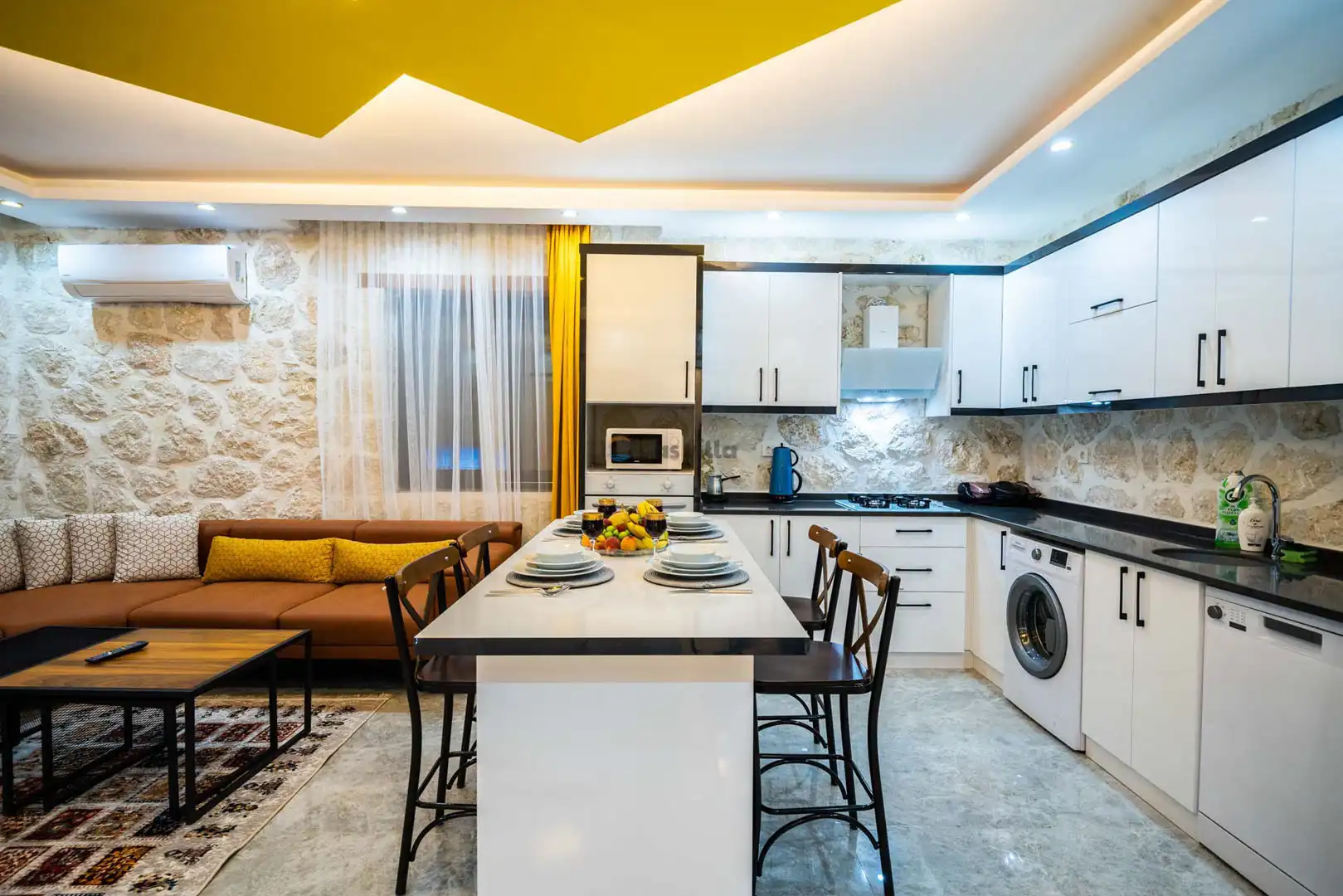 - Amerikan MutfakBulaşık MakinesiBuzdolabıFırınMikrodalga FırınAnkastre 4'lü OcakSu IsıtıcısıTencere ve Tava TakımıYemek TakımıKaşık Çatal Bıçak TakımıBardak TakımıYemek MasasıTost MakinesiKahve Makinesi