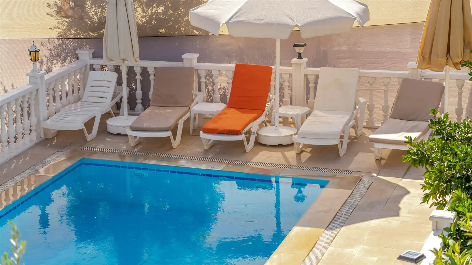- Özel Yüzme HavuzuŞezlongŞemsiyeSehpa (Dış Mekan)Yemek Masası (Dış Mekan)Barbekü / Mangal