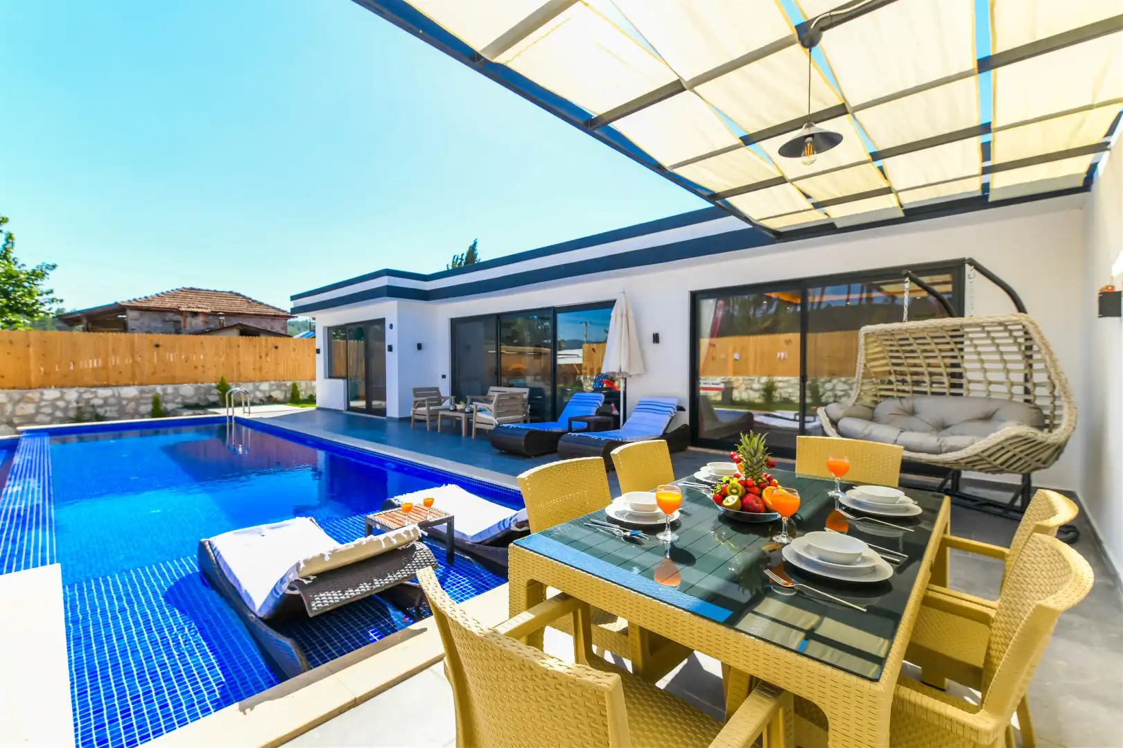 - Özel Yüzme HavuzuŞezlongŞemsiyeSehpa (Dış Mekan)Yemek Masası (Dış Mekan)Barbekü / Mangal